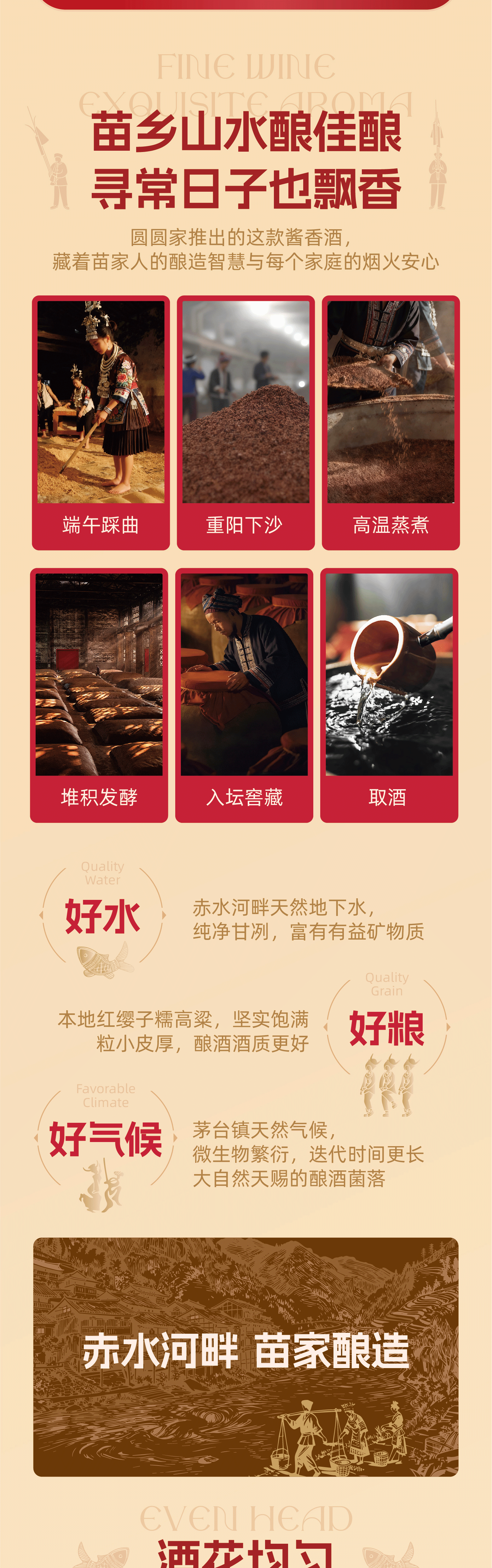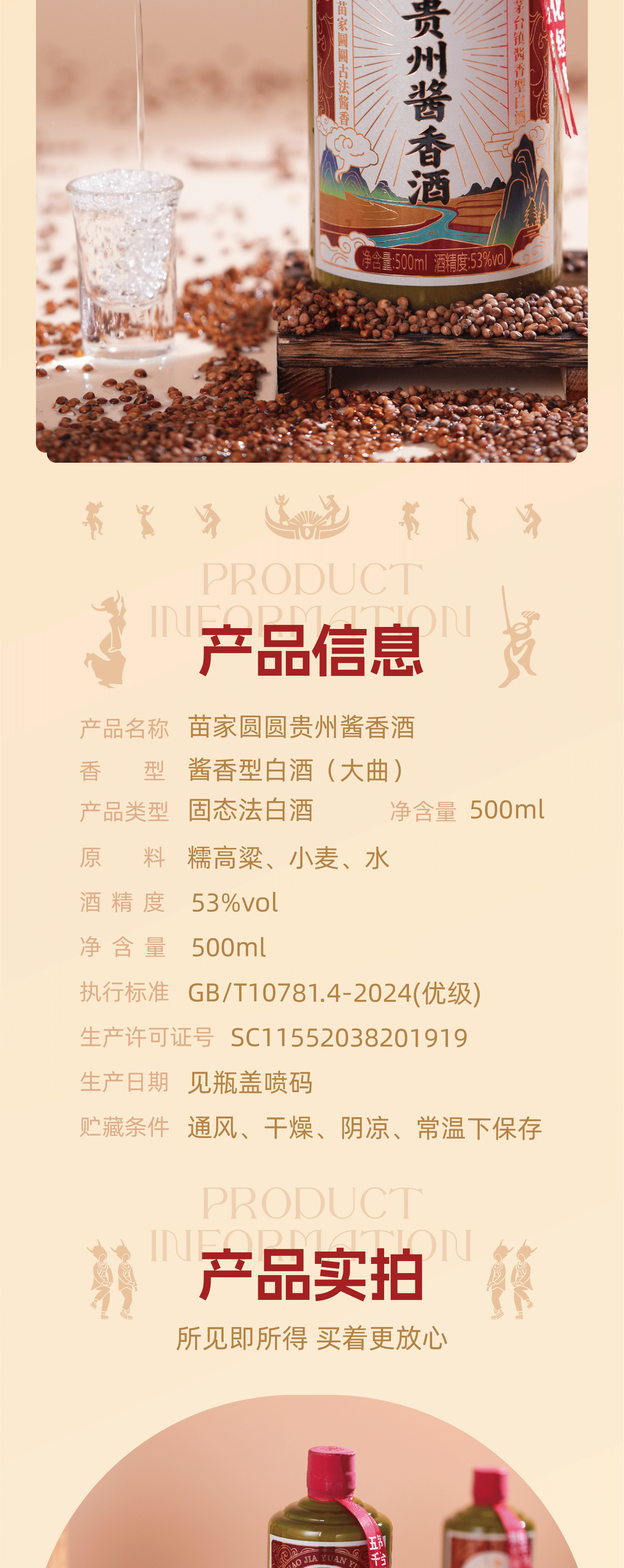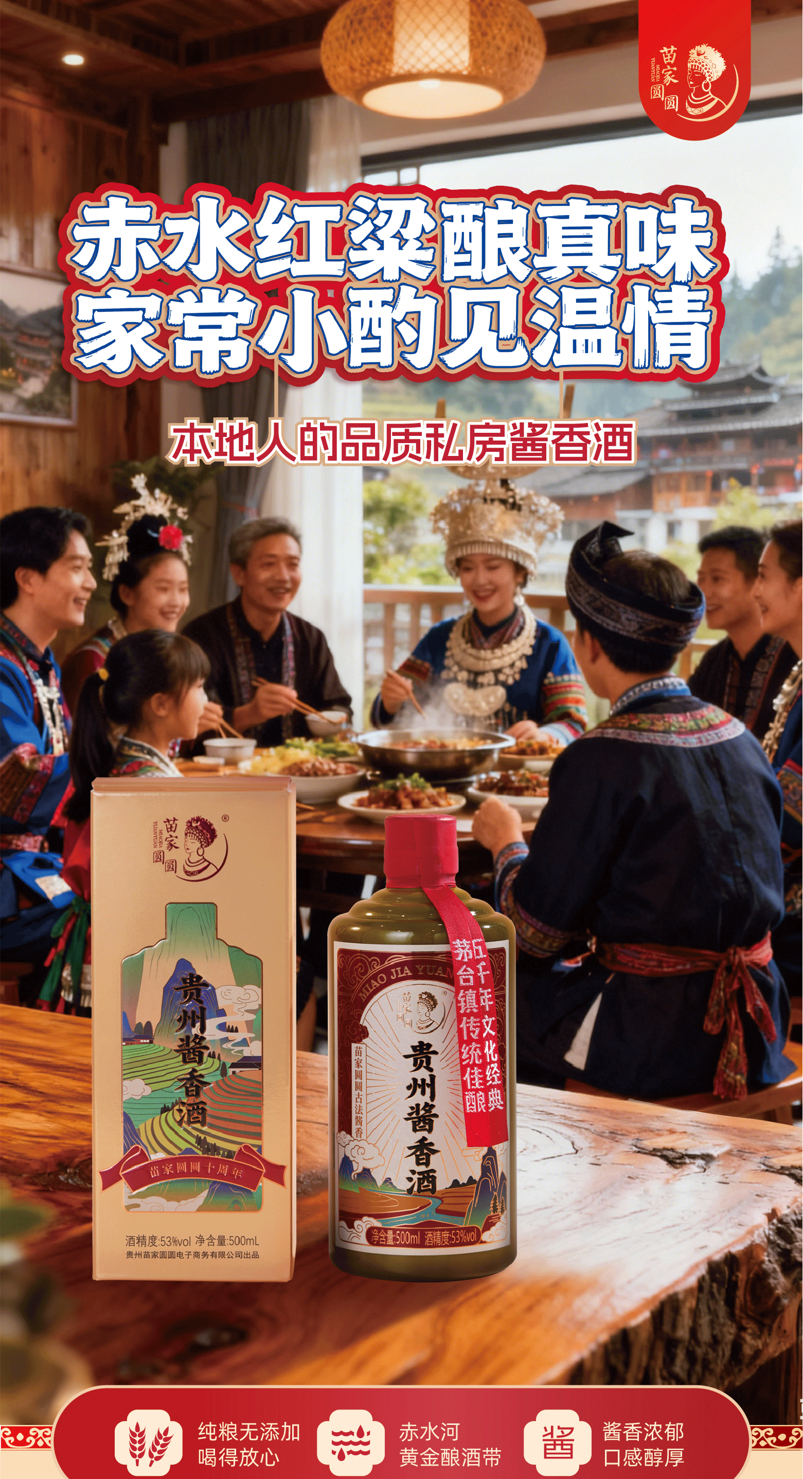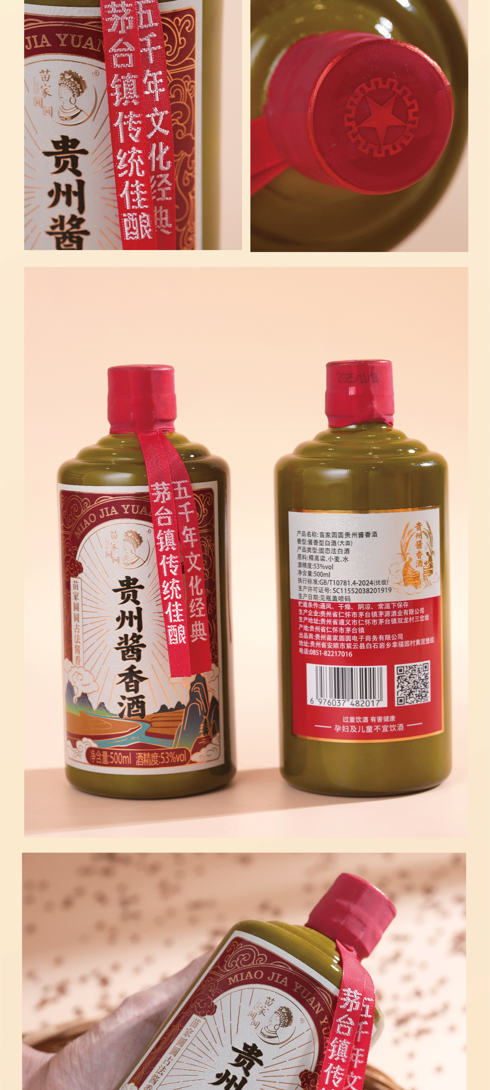 苗家圆圆贵州酱香酒 贵州茅台镇出品 坤沙白酒 纯粮食酿造53°酱香型 500ml/瓶 顺丰包邮