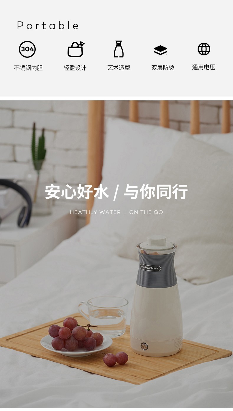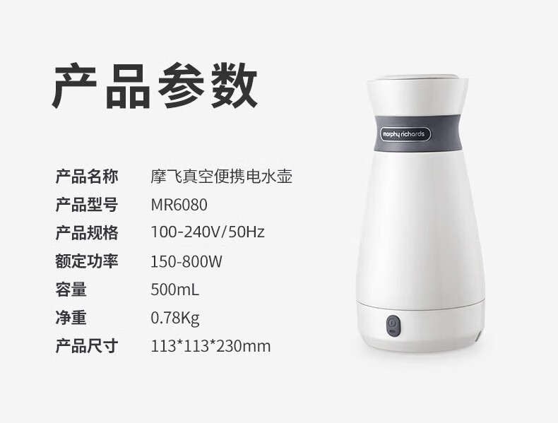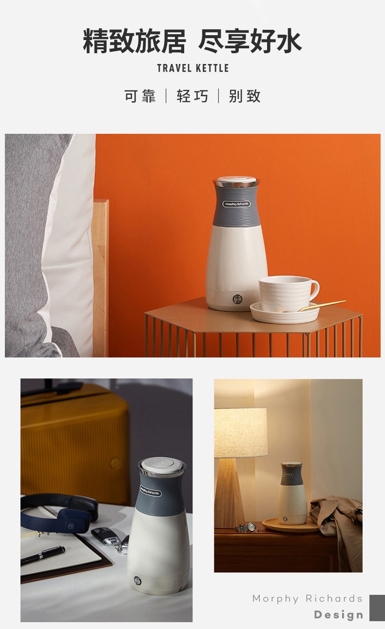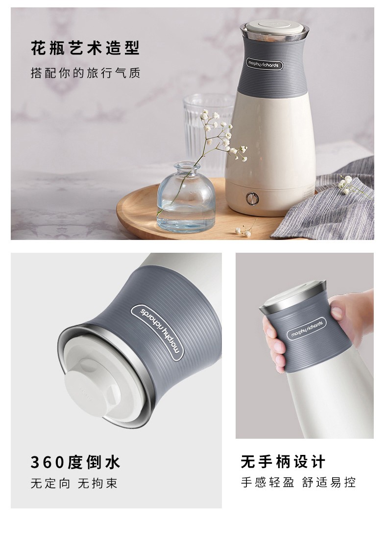 摩飞电器(Morphyrichards) 电水壶便携式不锈钢电热水壶旅行出差酒店烧水壶迷你小容量水壶 MR6090灰色【现货速发】