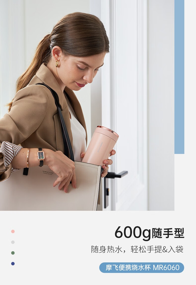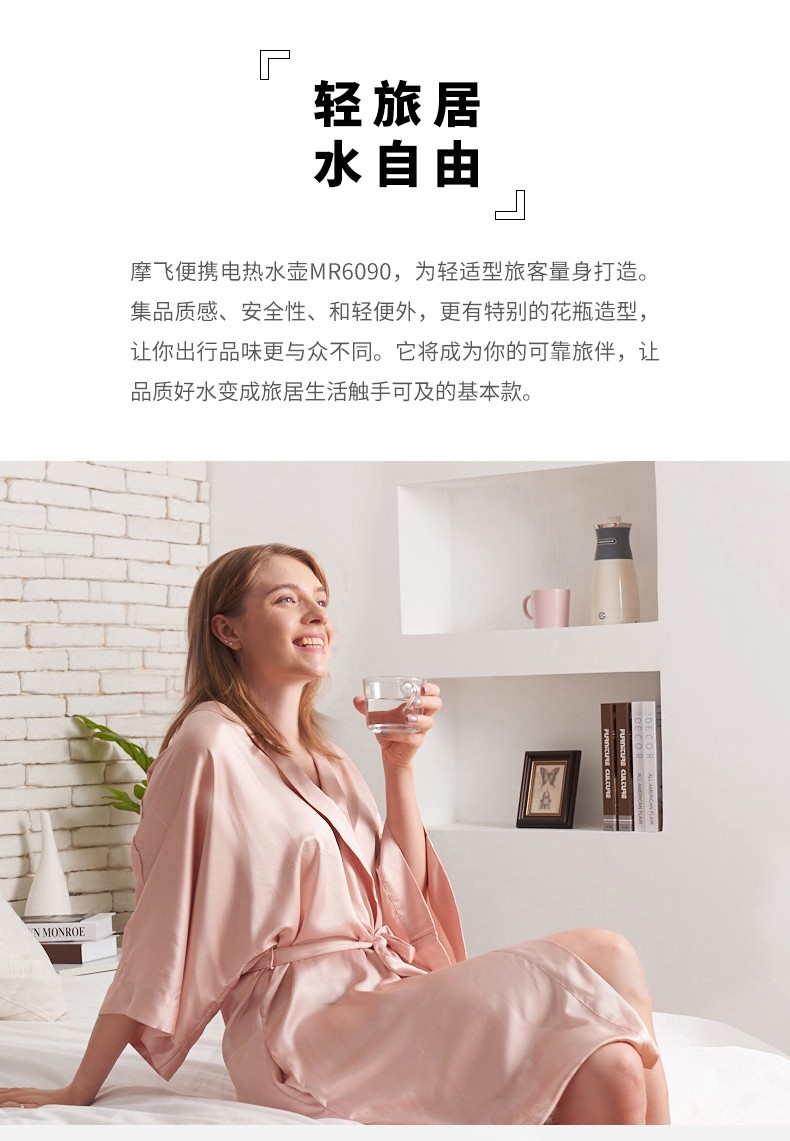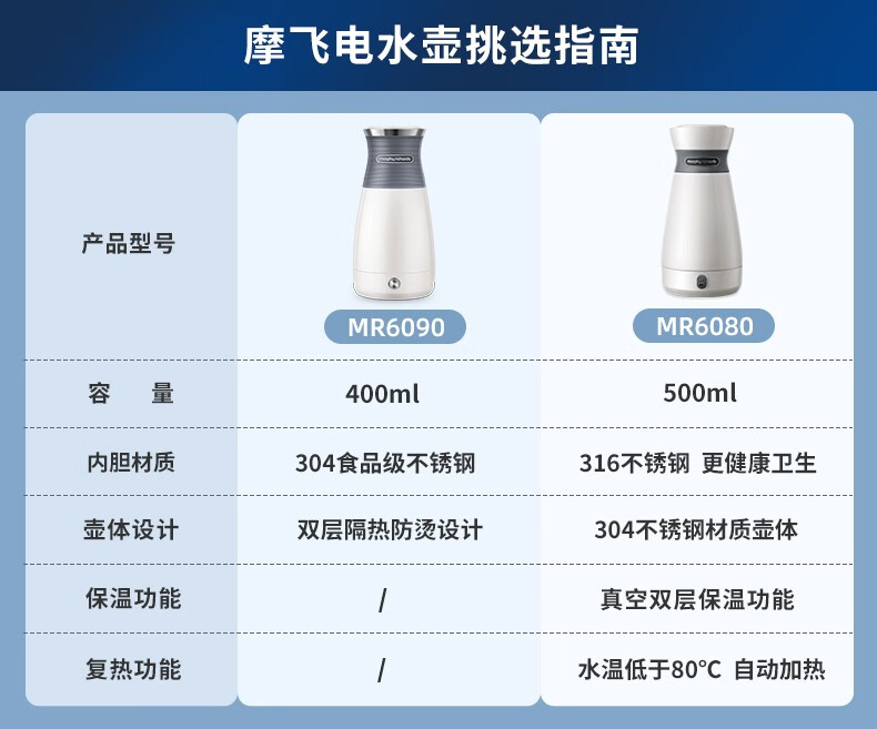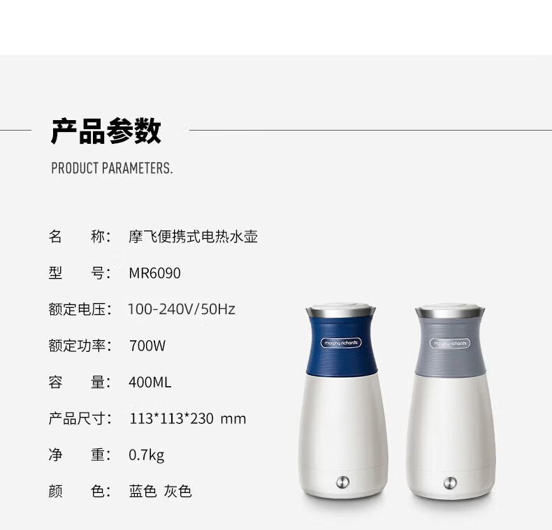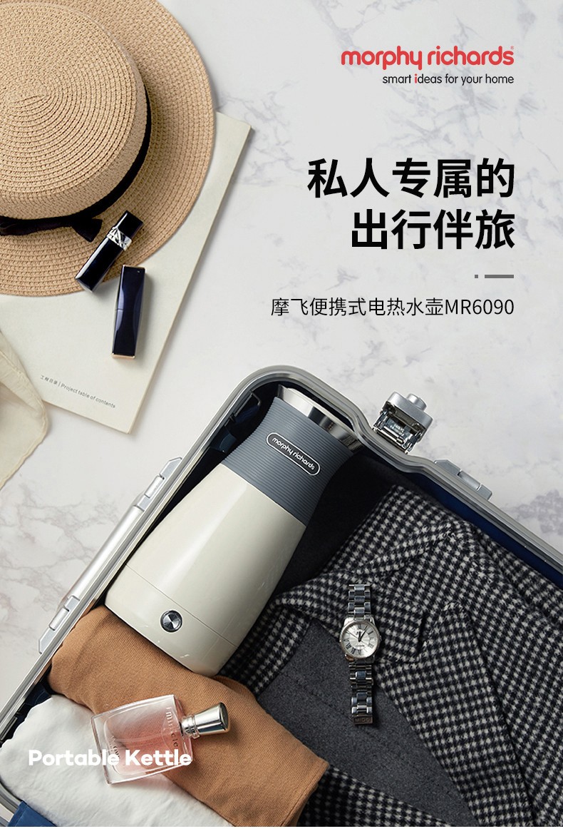 摩飞电器(Morphyrichards) 电水壶便携式不锈钢电热水壶旅行出差酒店烧水壶迷你小容量水壶 MR6090灰色【现货速发】