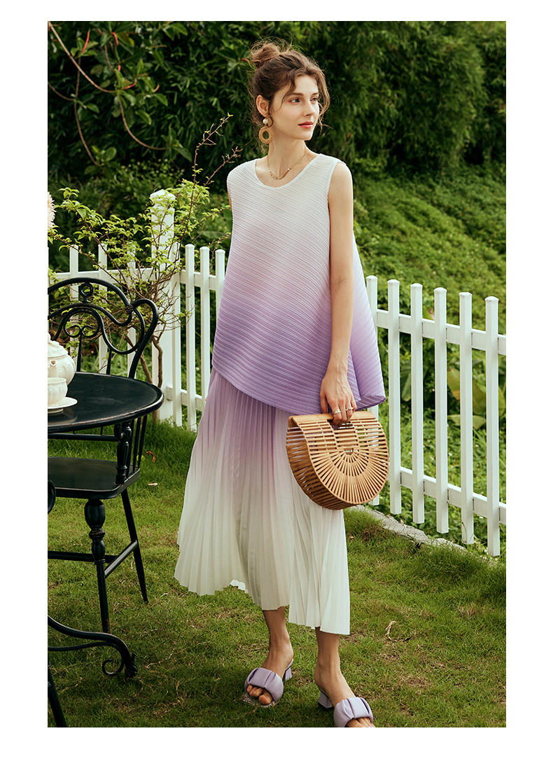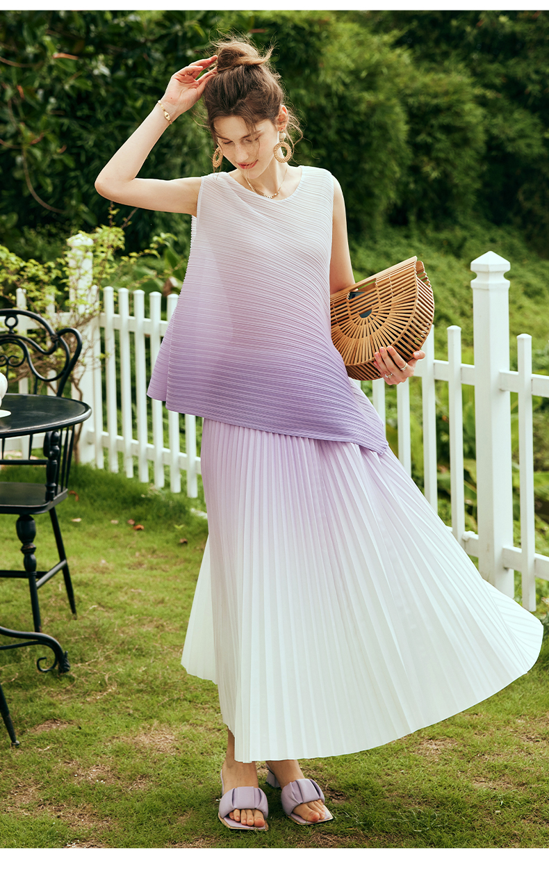 OLrain欧芮儿法式渐变百褶时尚套装女夏季2023新款宽松裙子两件套