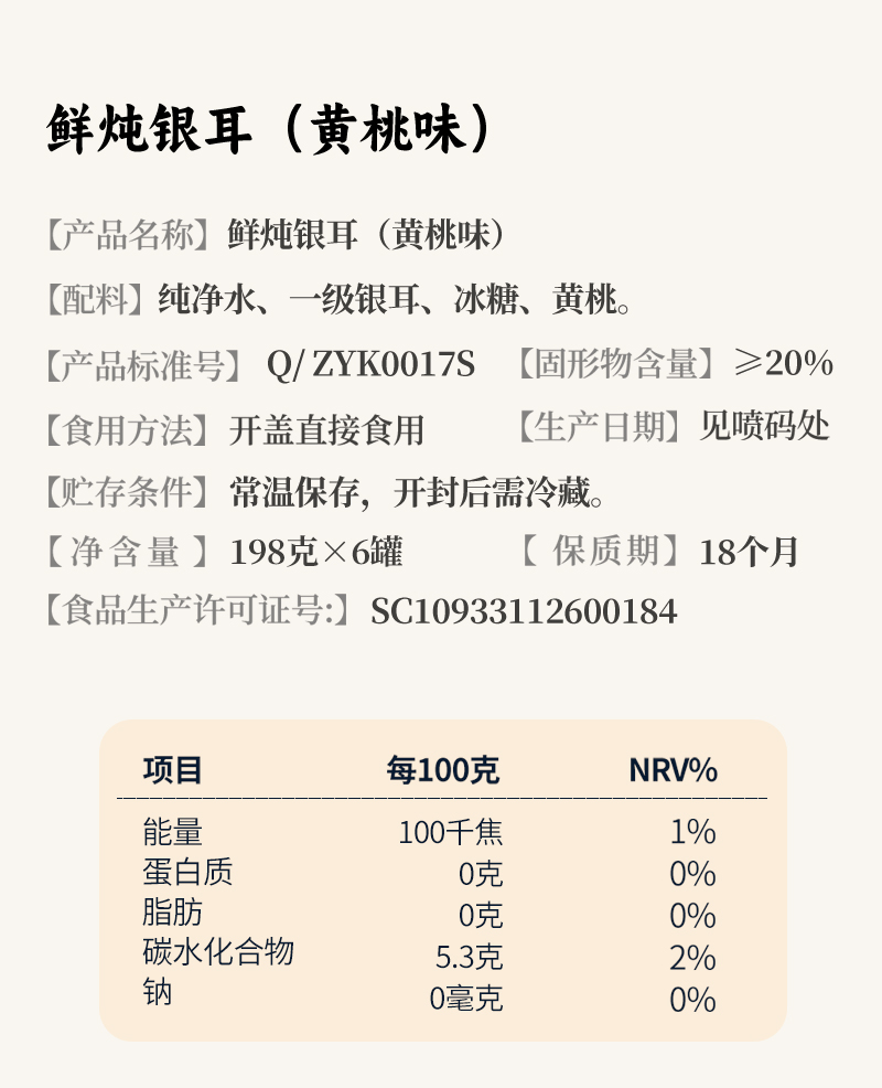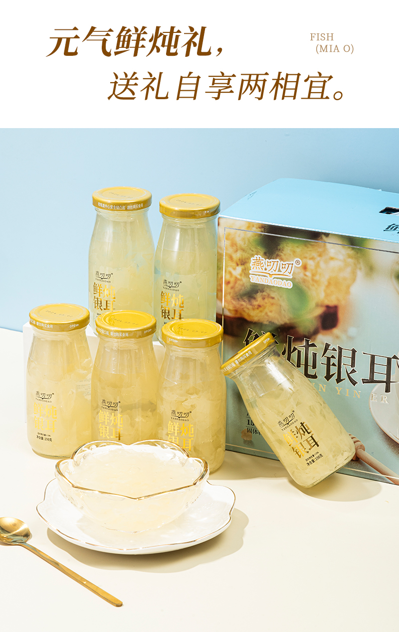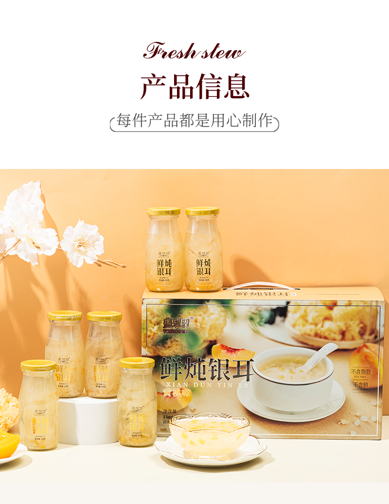 燕叨叨鲜炖黄桃银耳羹198克*6瓶礼盒老人孕妇速食滋补节日团购年货送礼