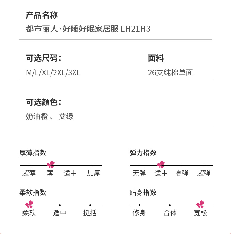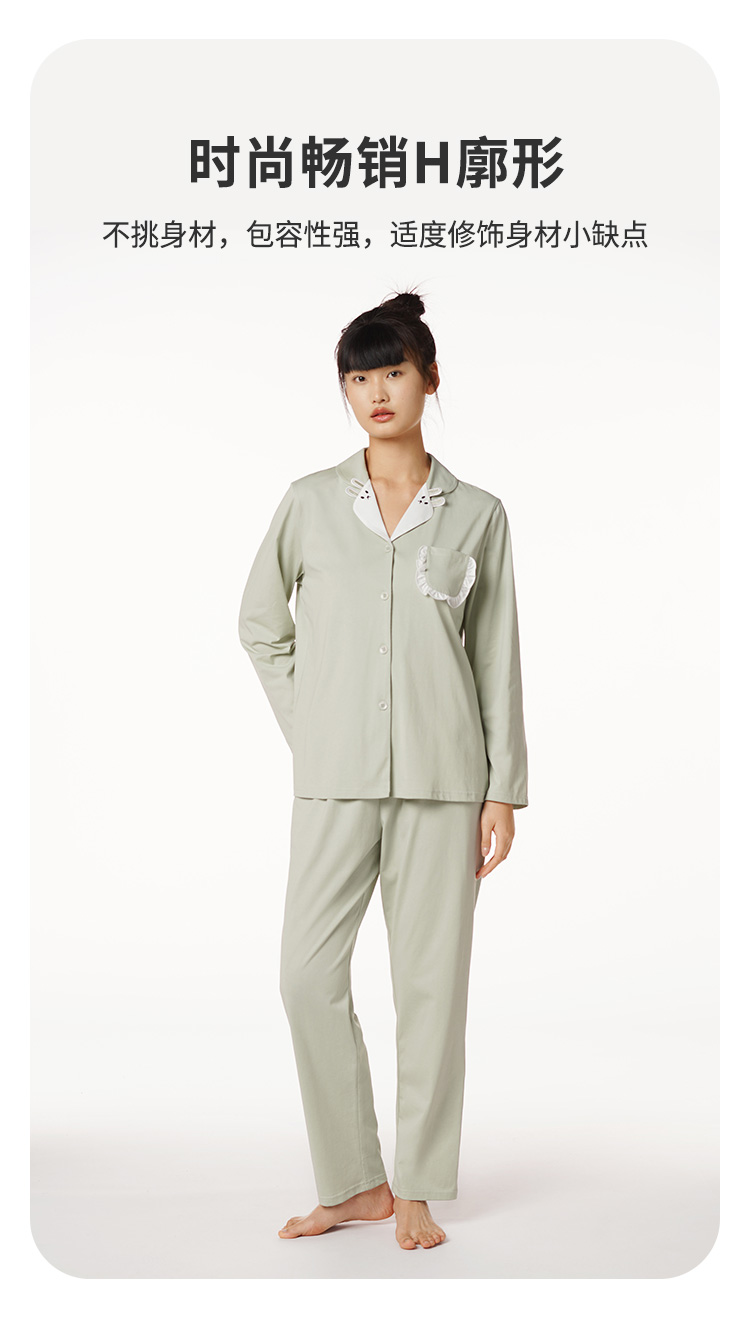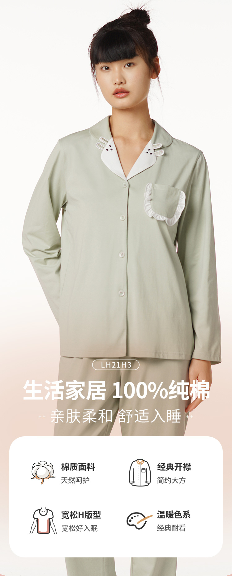都市丽人好睡好眠女士正价棉质套装26支棉单面薄家居服长袖睡衣LH21H3