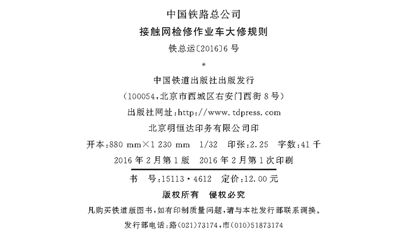 15113.4612接触网检修作业车大修规则(TG/GD 123-2016)