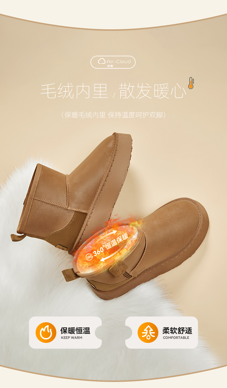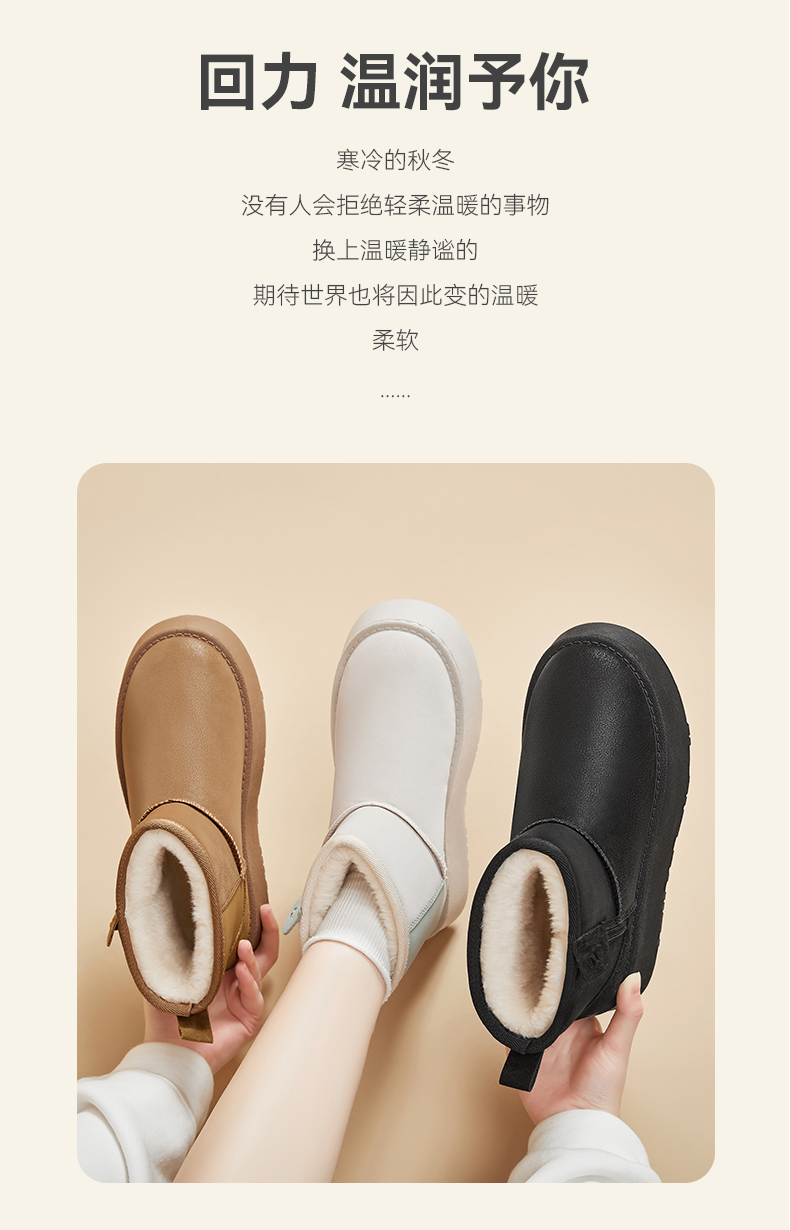 回力雪地靴女冬季2025新款皮毛一体短筒棉靴加绒加厚保暖棉鞋子女