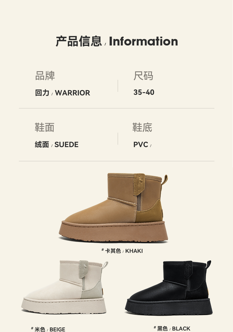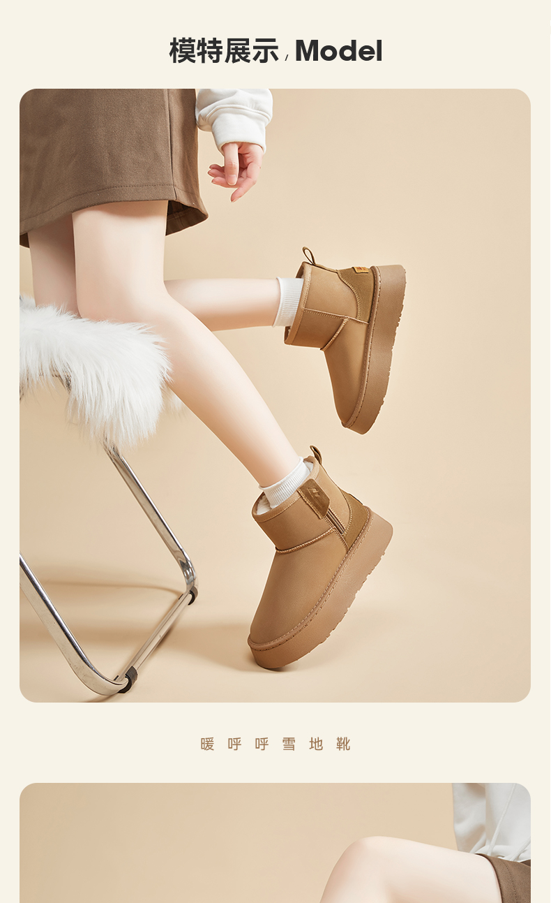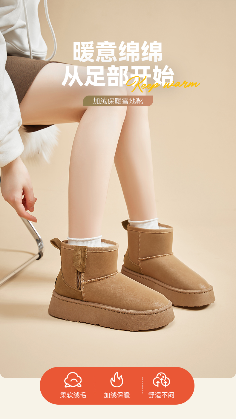 回力女鞋厚底雪地靴2025冬季新款加绒短靴防泼水保暖鞋子加厚棉鞋