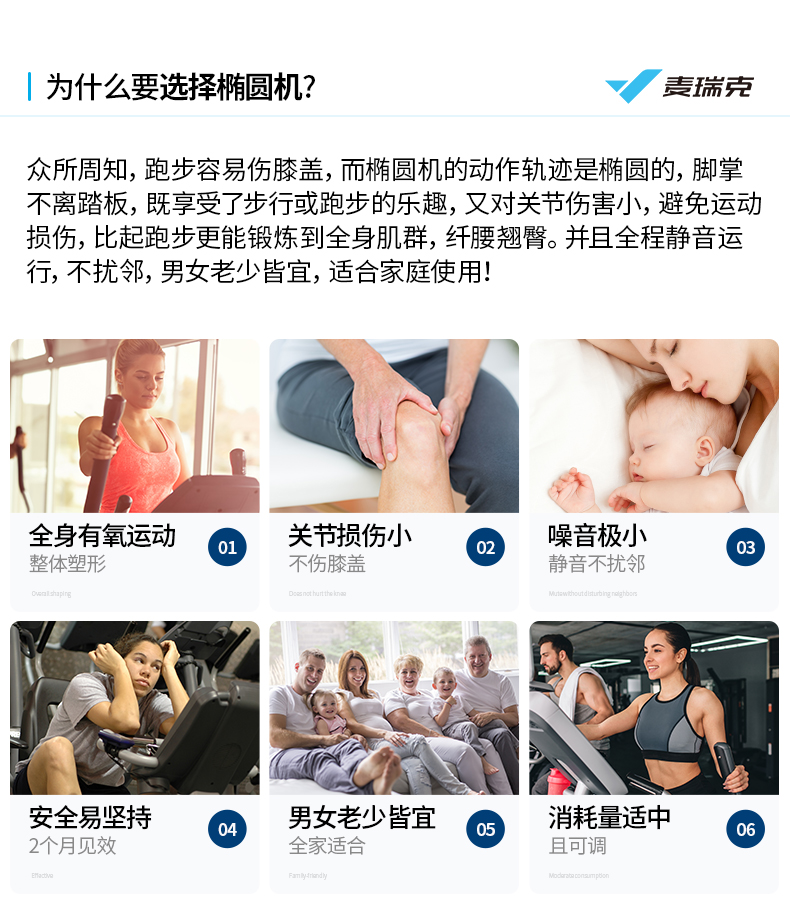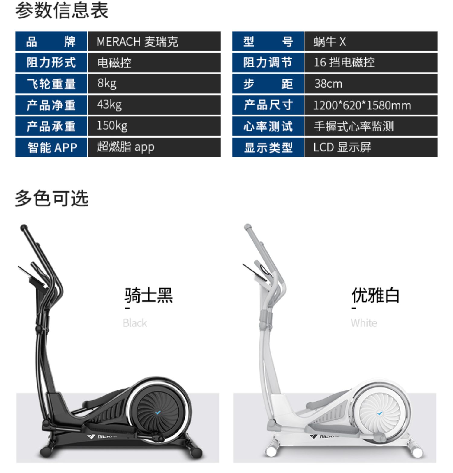 麦瑞克椭圆机家用太空漫步机健身房器材运动小型静音椭圆仪蜗牛X