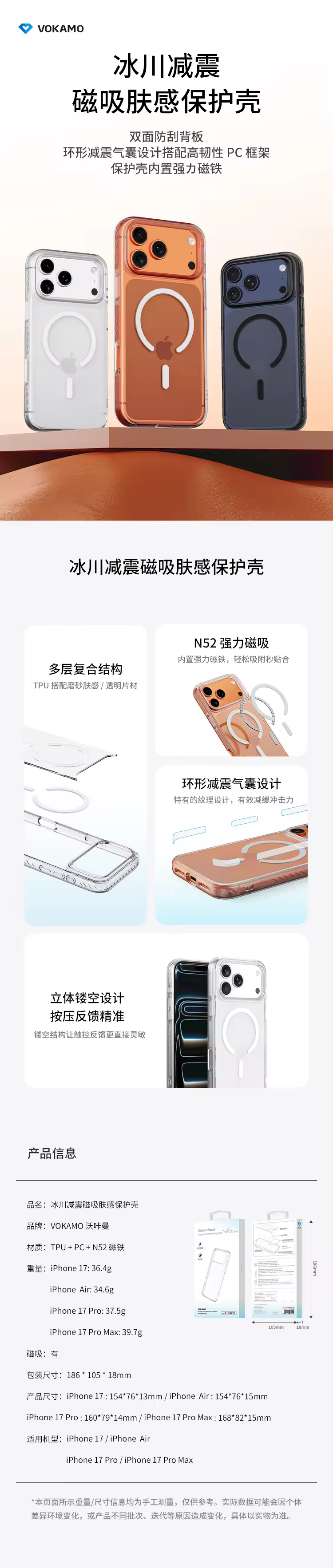 VOKAMO沃咔曼 iPhone 系列 冰川减震磁吸肤感保护壳-17 系列