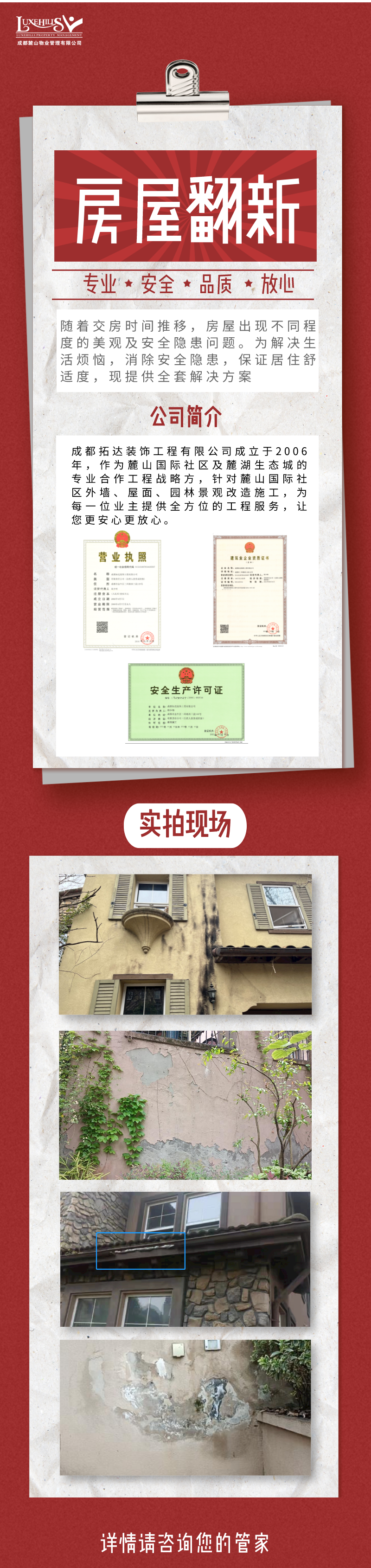 【旧房翻新】屋面瓦 天沟及落水管 外墙砂胶漆 木作改造 1元占位预约上门勘查出方案