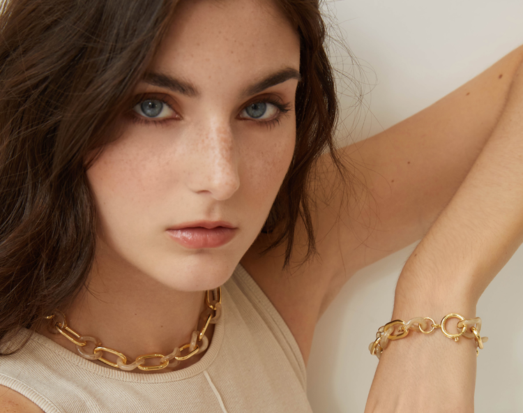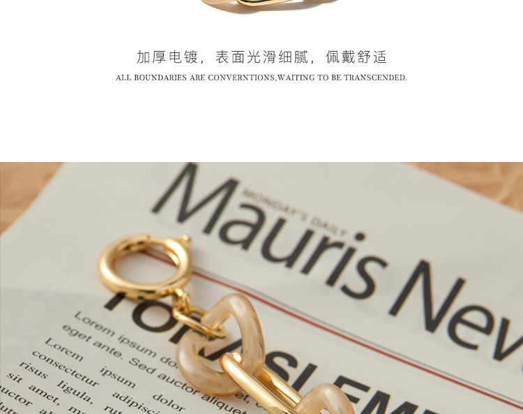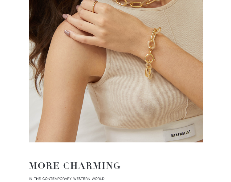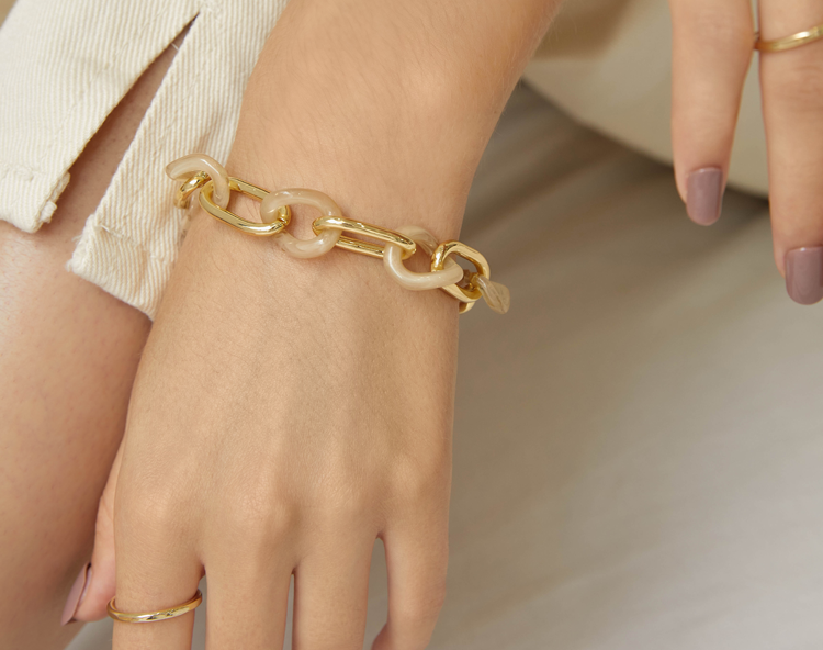 Oflye潮流饰品 独特手链女亚克力小众设计金属链条欧美ins时尚感个性新款装饰品