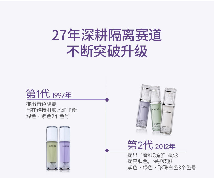 新款 Laneige兰芝雪纱隔离妆前乳防晒打底矫色修颜提亮遮瑕清透持妆紫隔绿隔