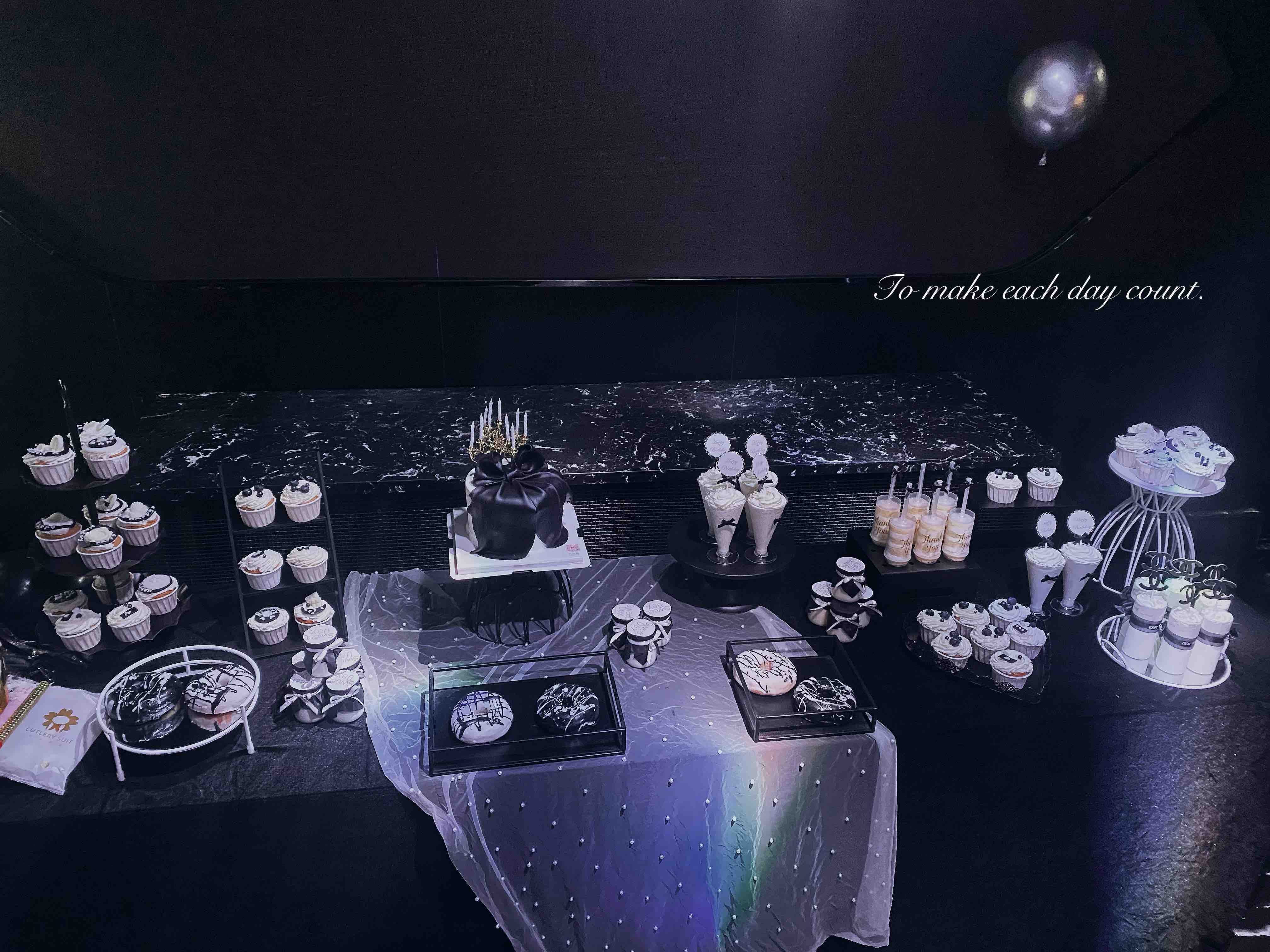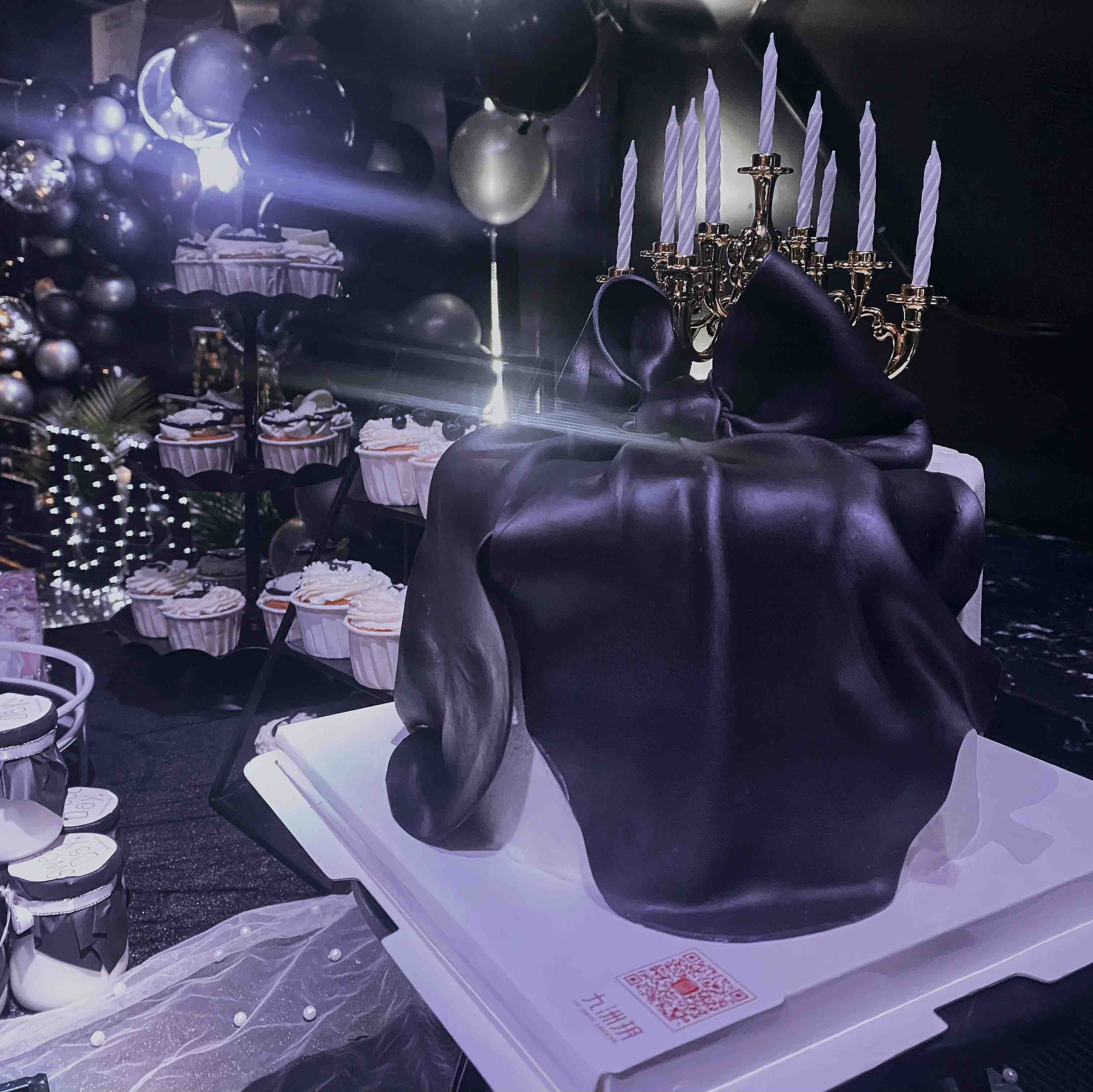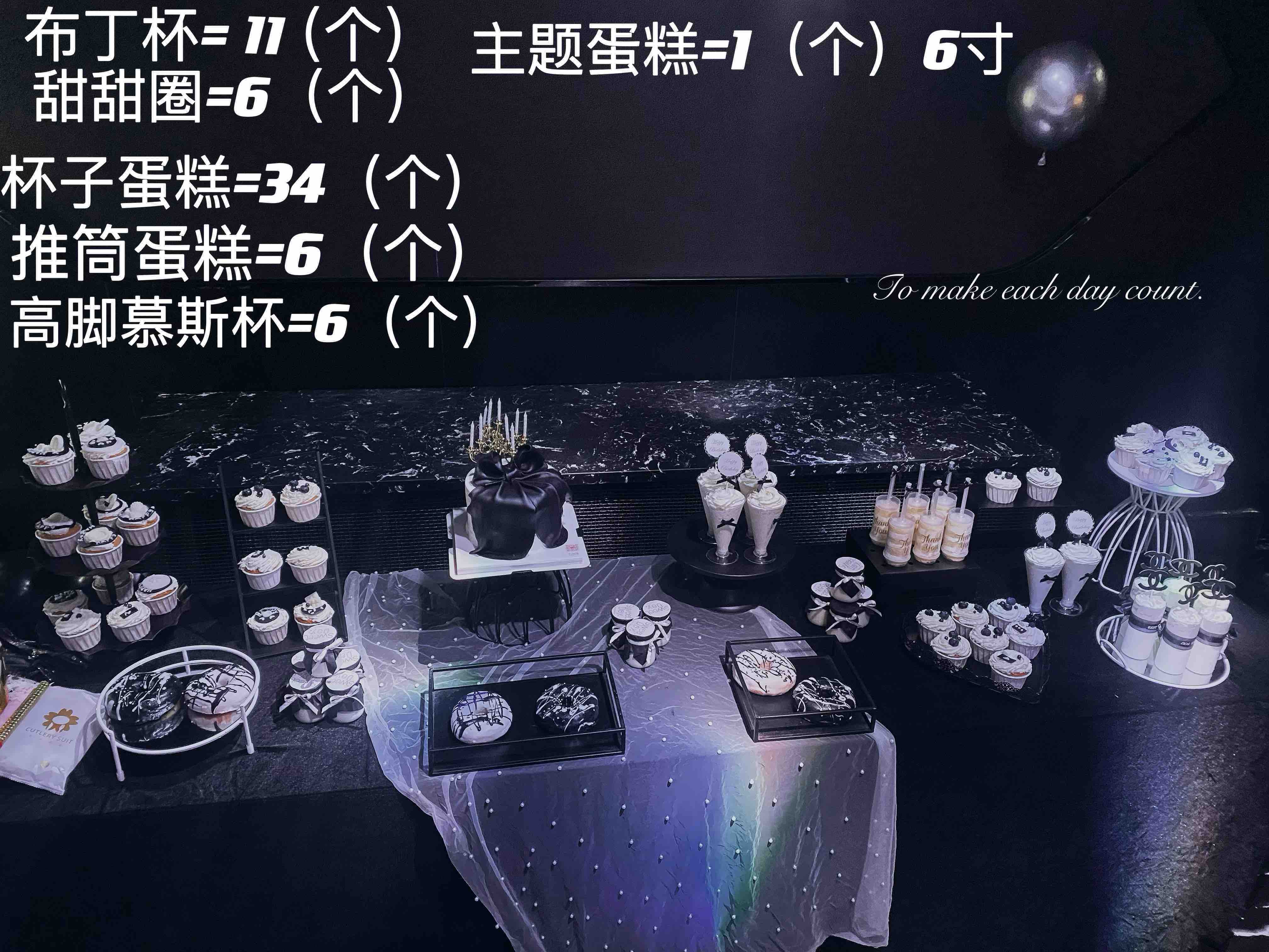 高级感黑白配甜品台