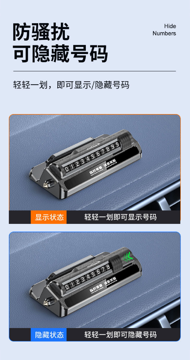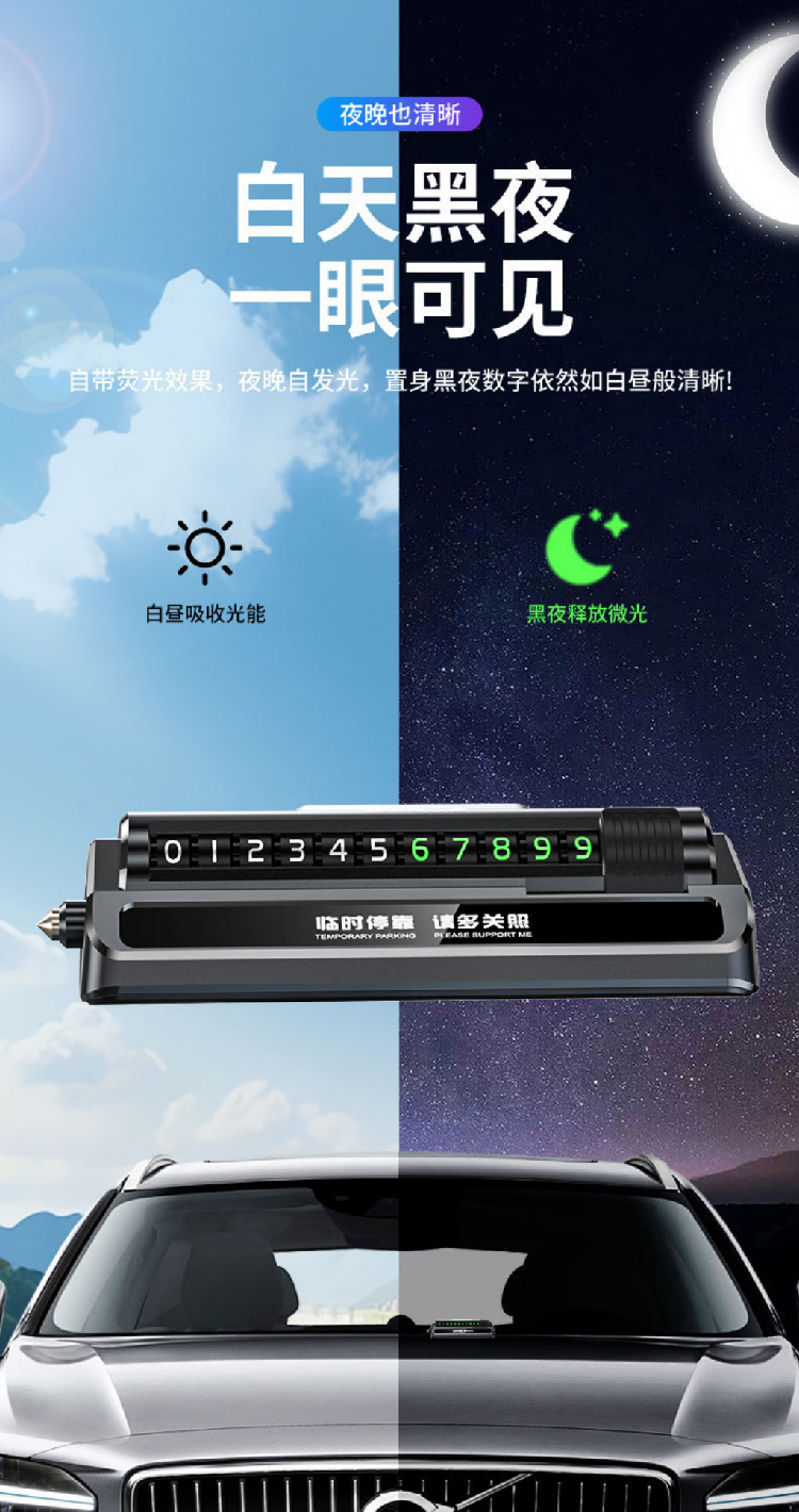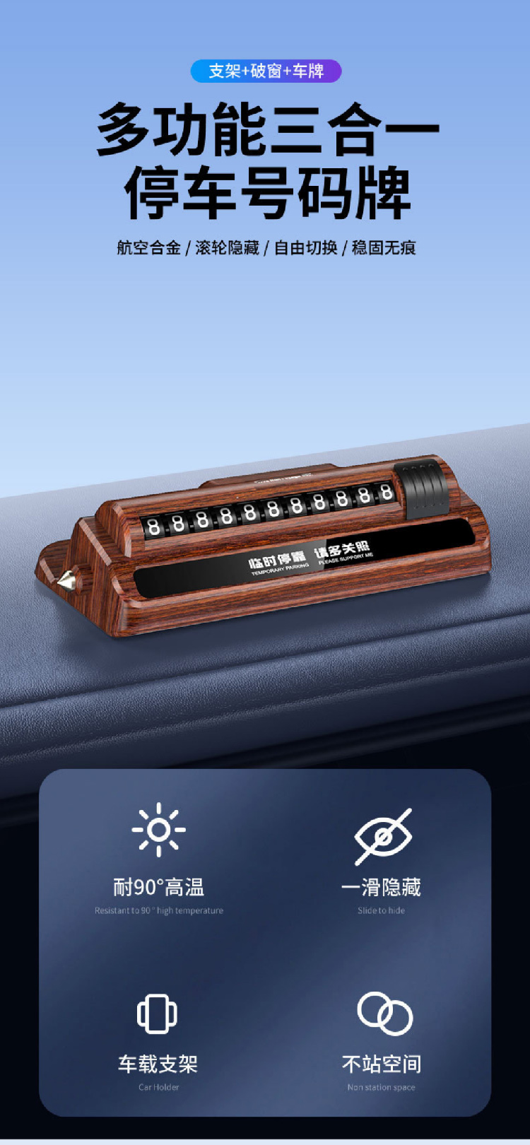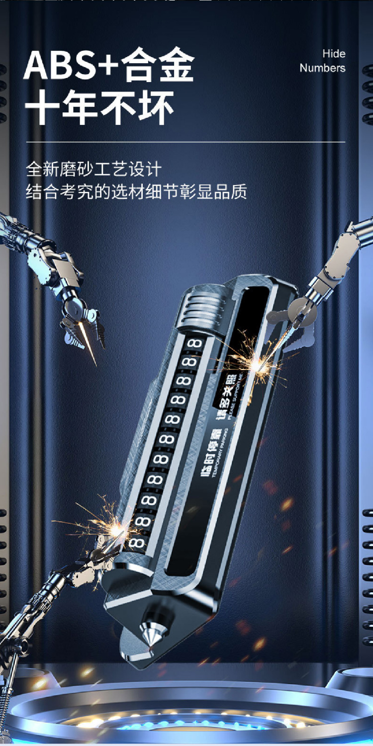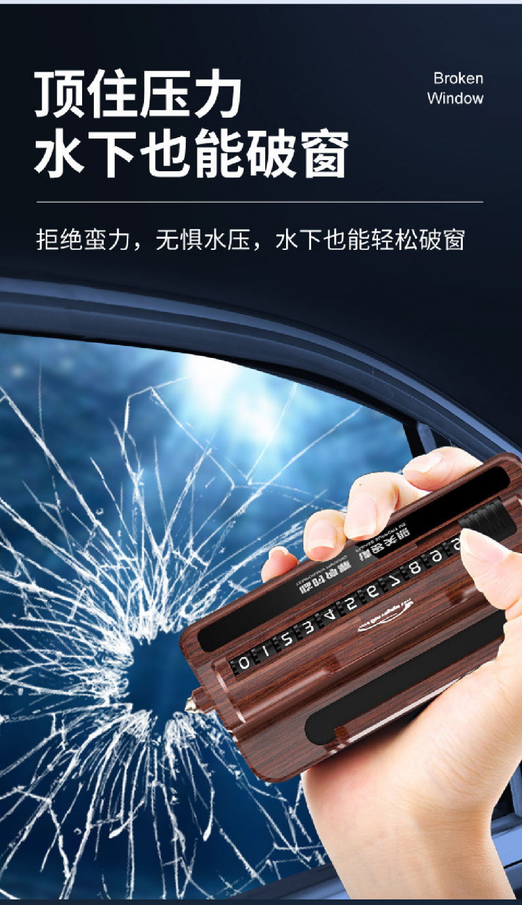 防盗报警汽车安全锤车用三合一多功能车载手机支架临时停车号码牌
