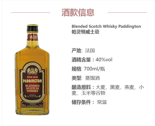 【双支特惠装】帕灵顿苏格兰威士忌 Paddington Scotch Whisky 700ml*2