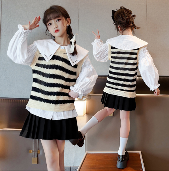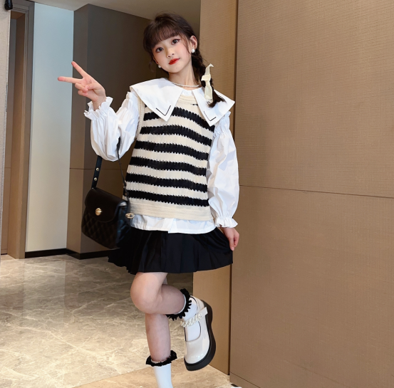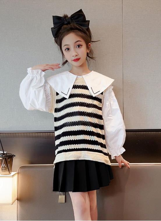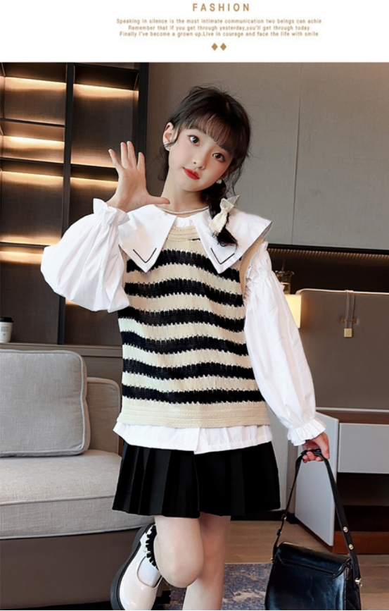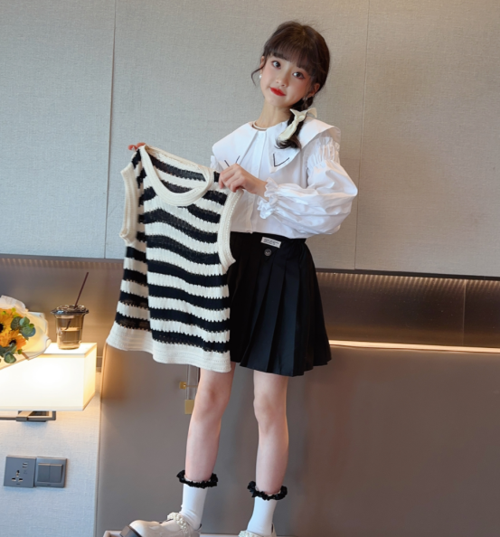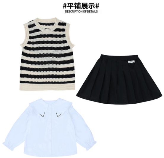 【规格】袋装常规 :经典条纹无袖+白色小衬衫+百褶jk裙