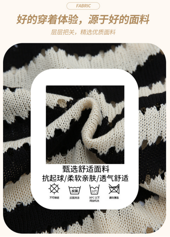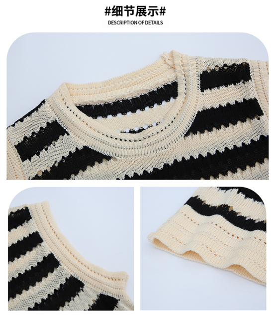 经典条纹结合镂空提花 无袖的背心碰撞出时髦的清凉感 单穿叠穿都好看 春秋出门必备的一件