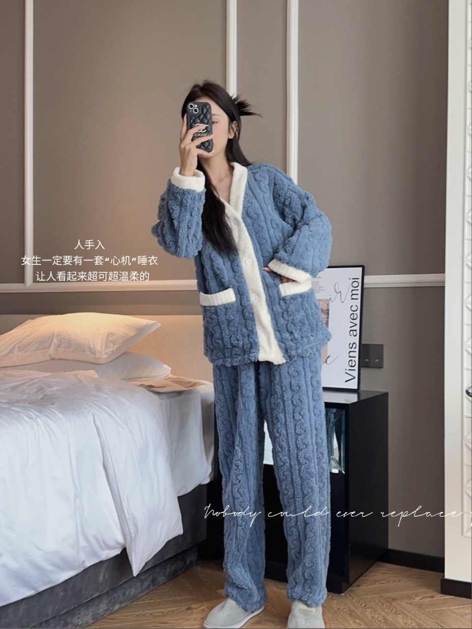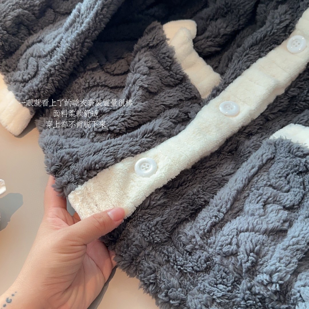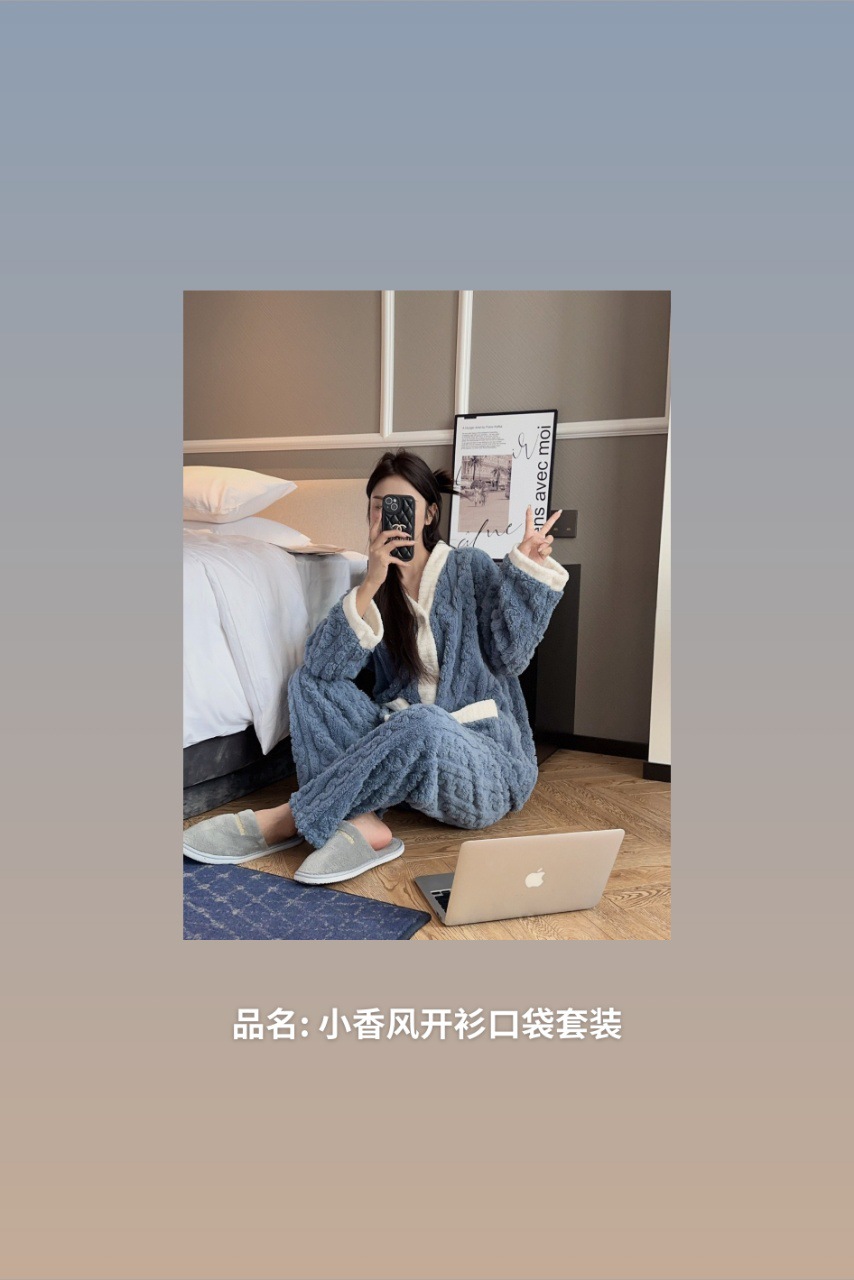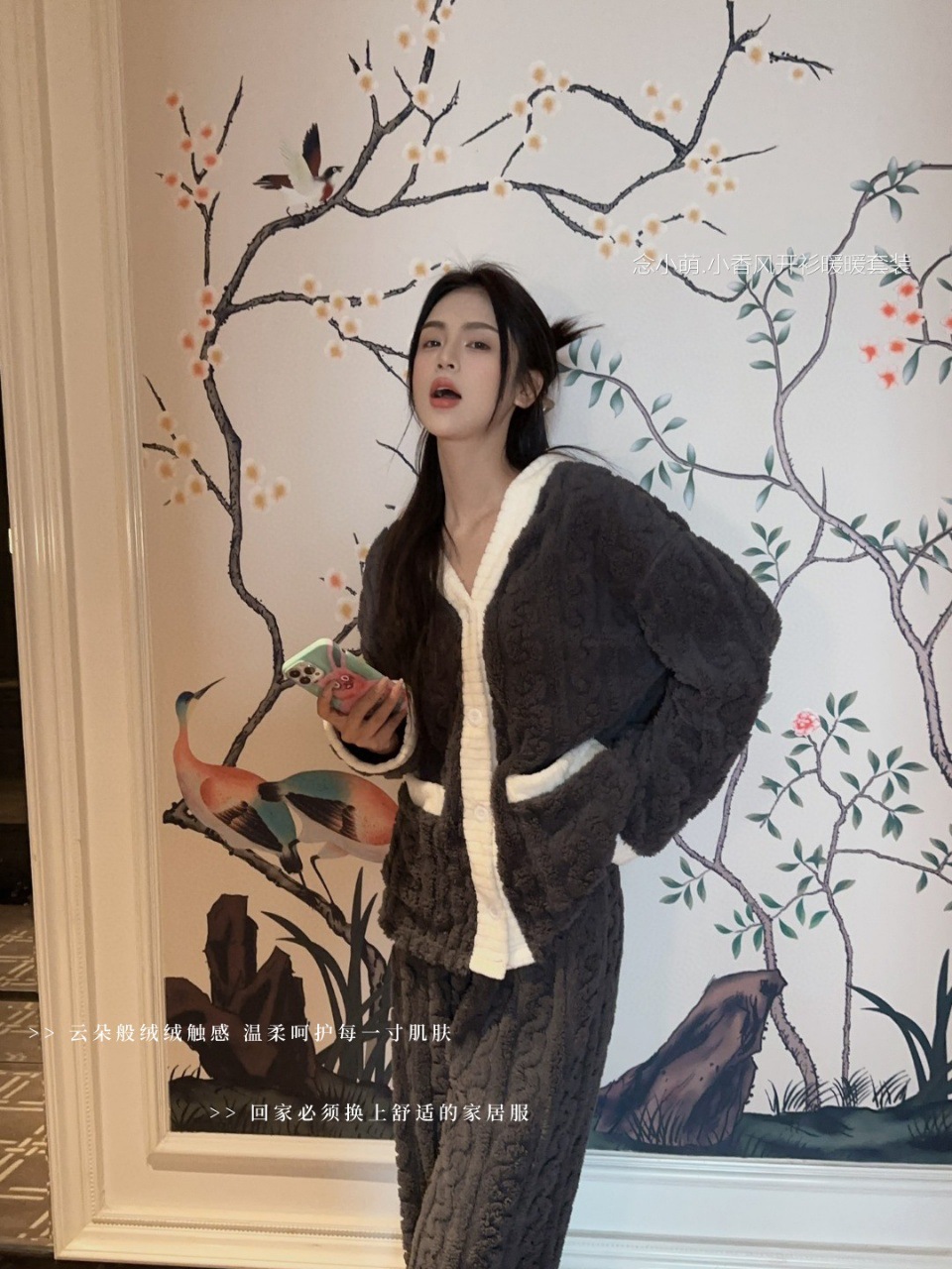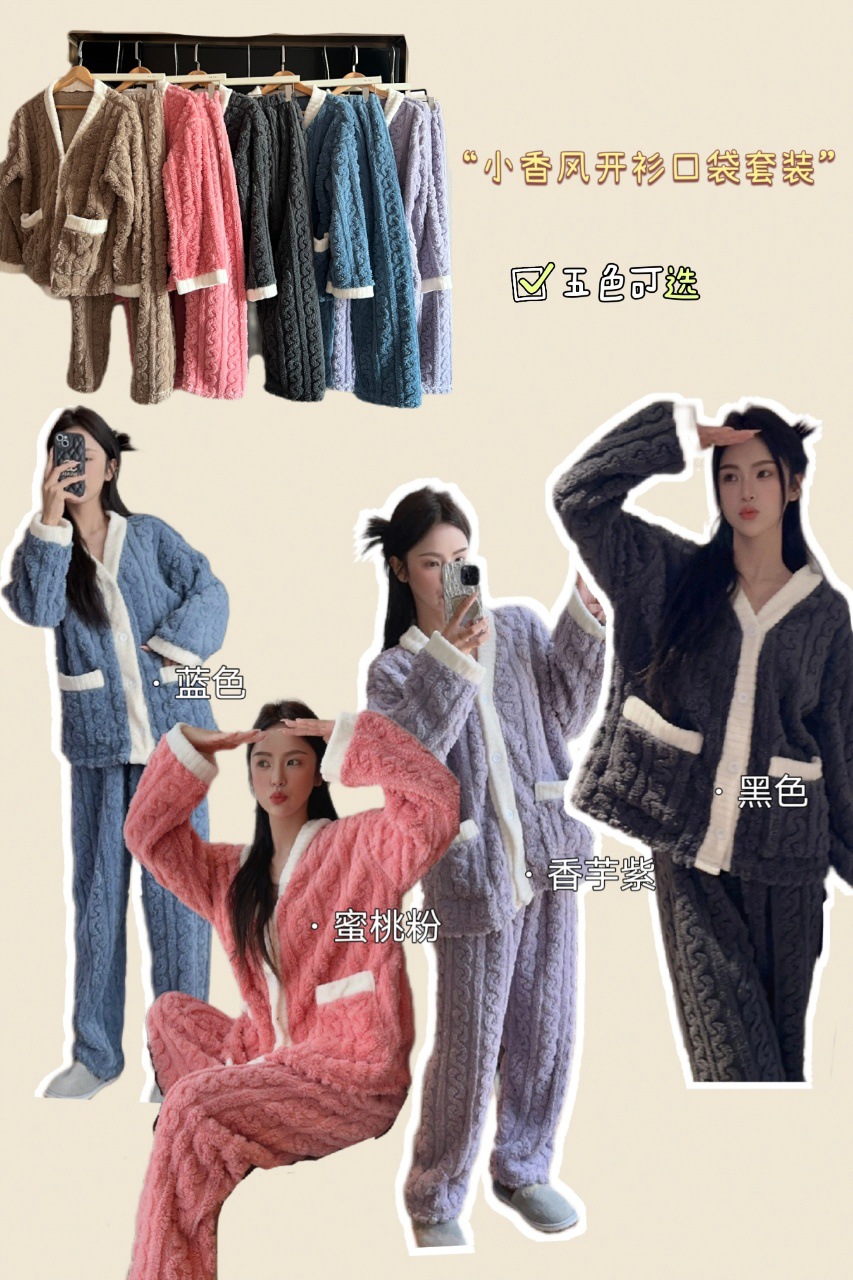 年终大促!【温暖!嘎嘎舒服】冬季新款纯色提花舒棉绒套装,睡衣家居服开衫女保暖加厚情侣装,宛如云朵般柔软的材质,温柔呵护肌肤