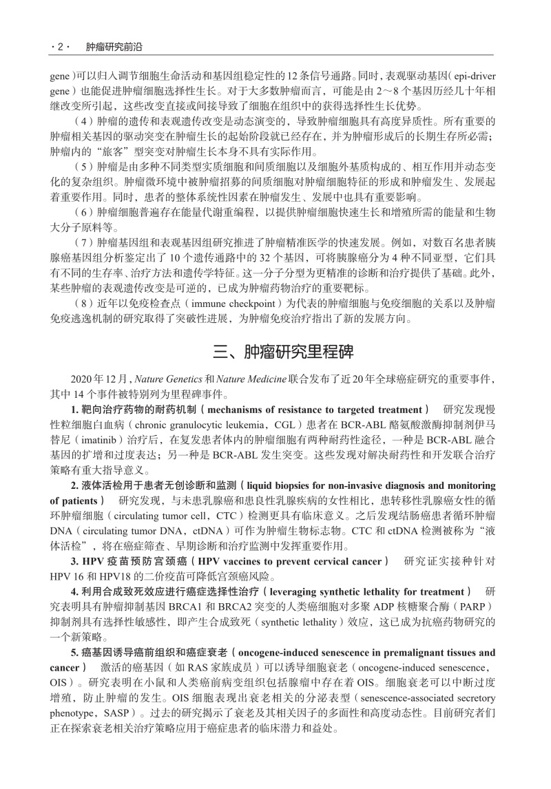 综述近年肿瘤领域研究进展。