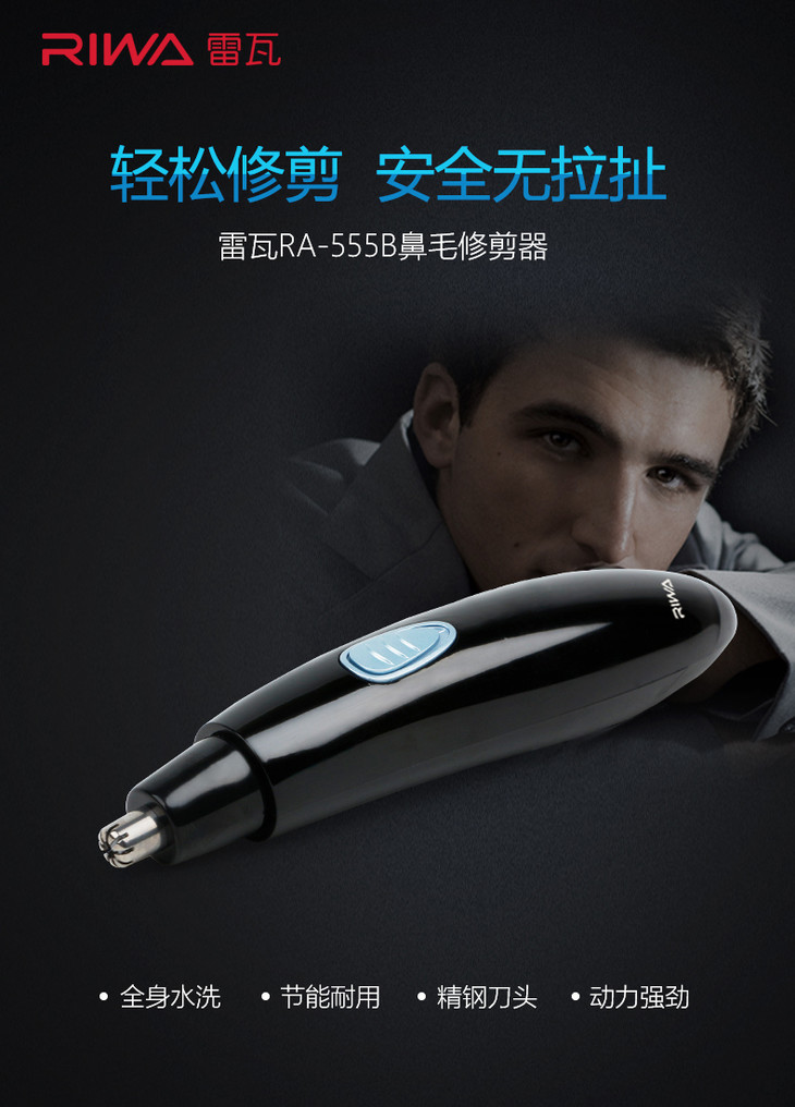 雷瓦(RIWA) 鼻毛器 水洗电动鼻毛修剪器 干电池版RA-555B 商品图0