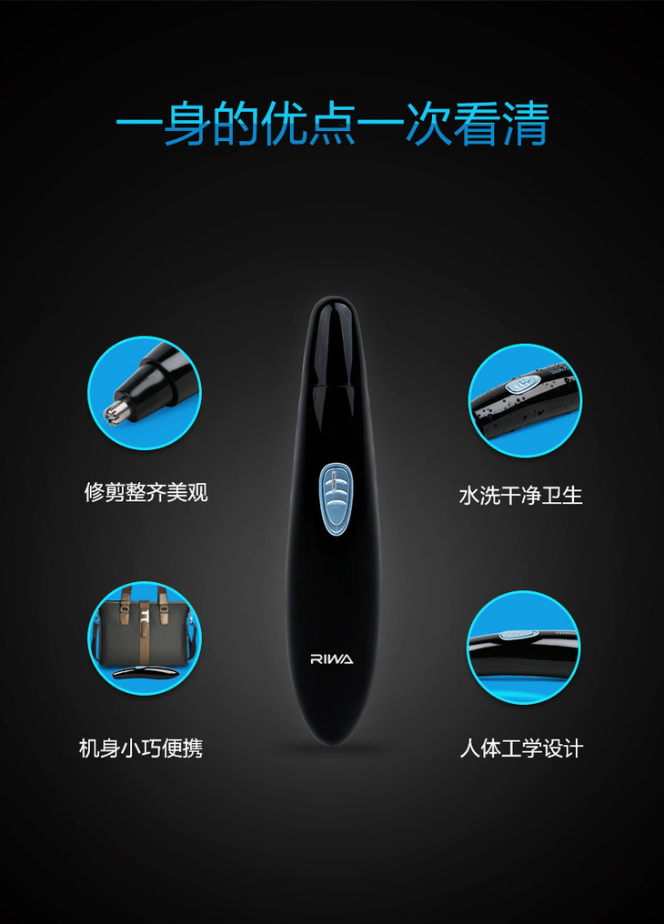 雷瓦(RIWA) 鼻毛器 水洗电动鼻毛修剪器 干电池版RA-555B 商品图1