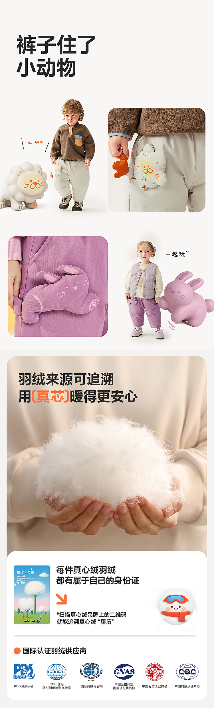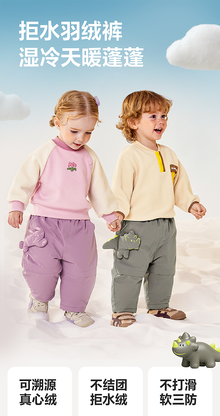 [拒水羽绒]迷你巴拉巴拉男女童宝宝羽绒裤2025冬新品三防保暖裤子