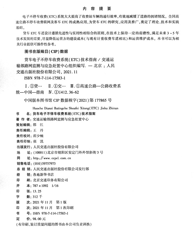 书名:货车电子不停车收费系统(ETC)技术指南