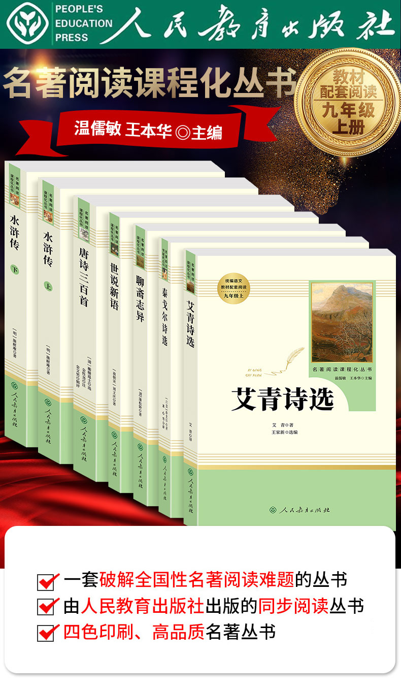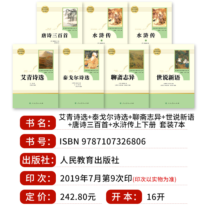 全7本九年级上册必读名著水浒传艾青诗选唐诗三百首世说新语聊斋志异泰戈尔诗选人民教育出版社正版原著完整版9上初中课外阅读书籍