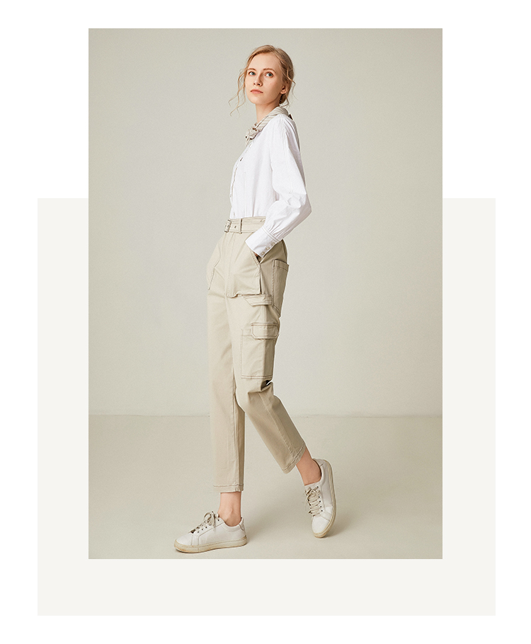 famecoco范可儿工装休闲裤女纯棉运动休闲九分裤直筒裤F195GA026