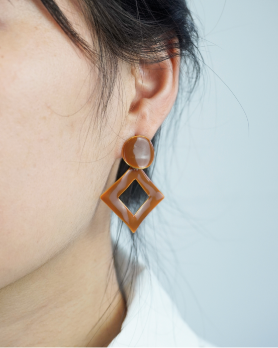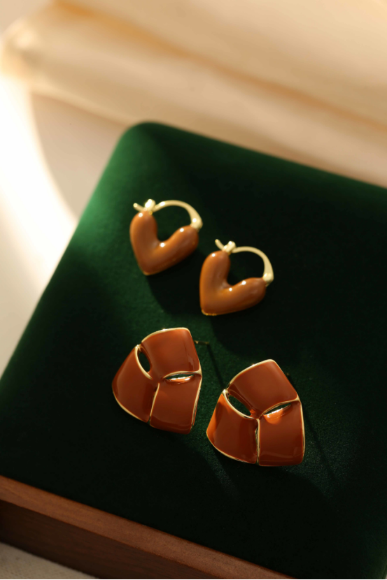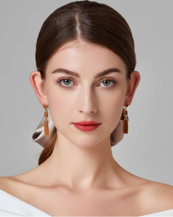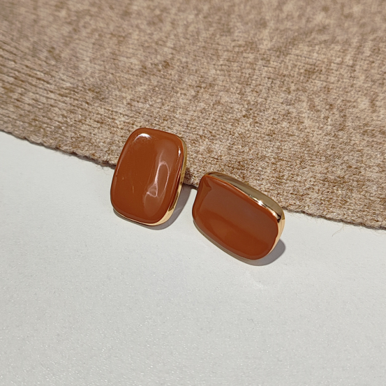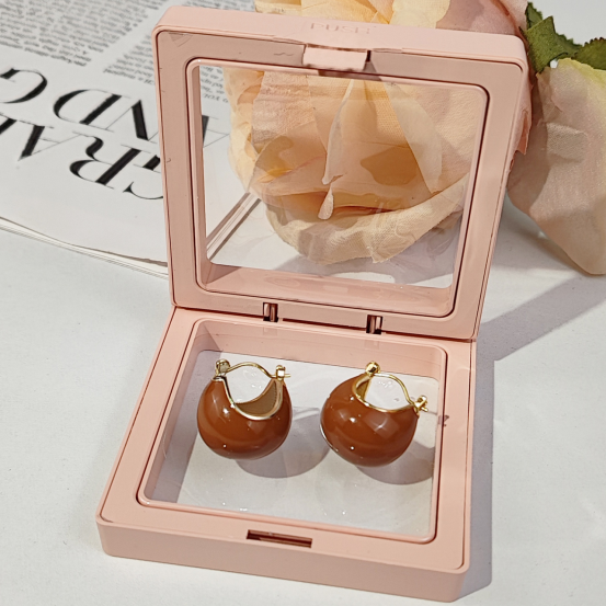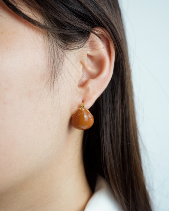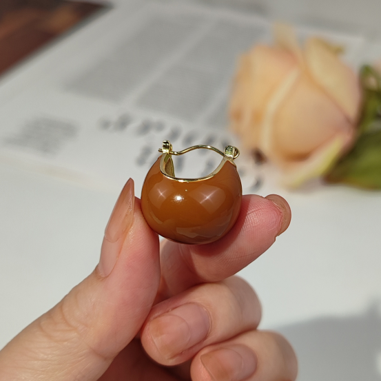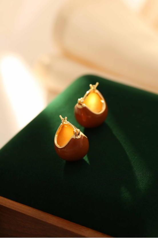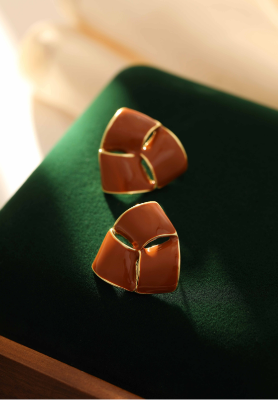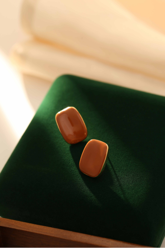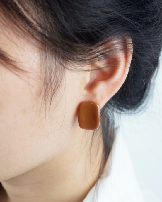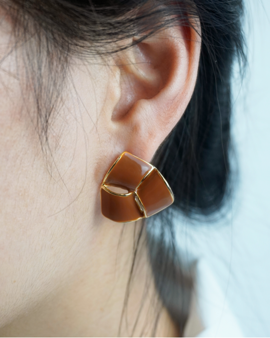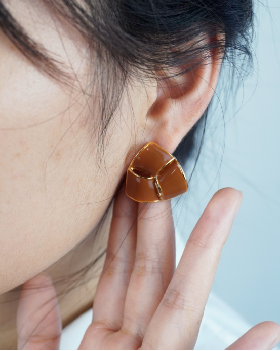 只有简单的棕色滴釉几何面,反而更能体现出这对耳环的质感,在灯光下就能欣赏到它美丽的光泽感