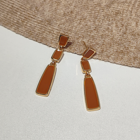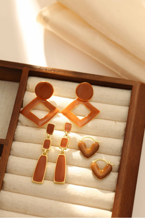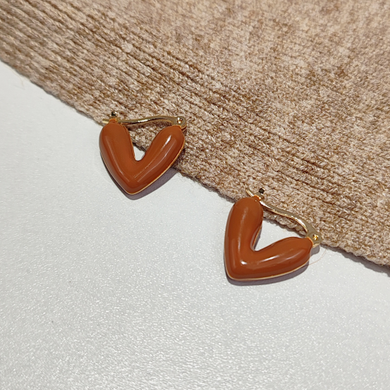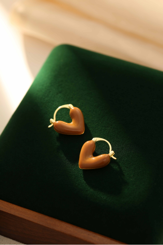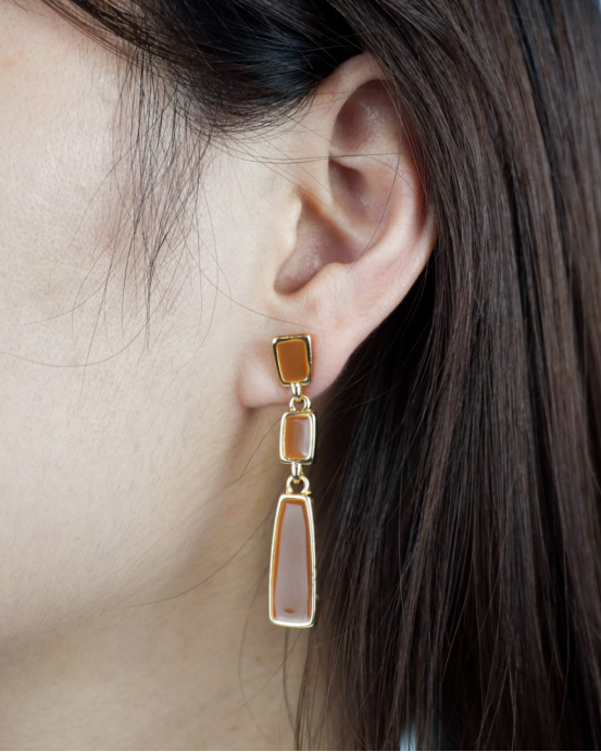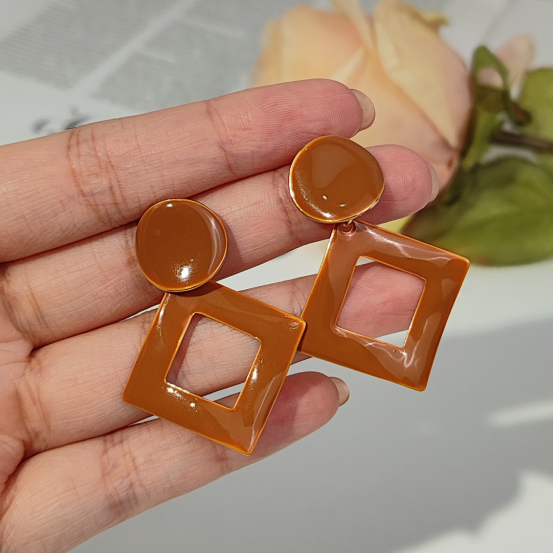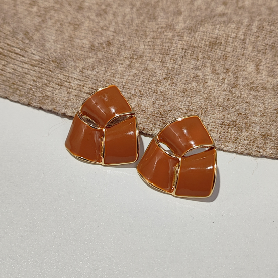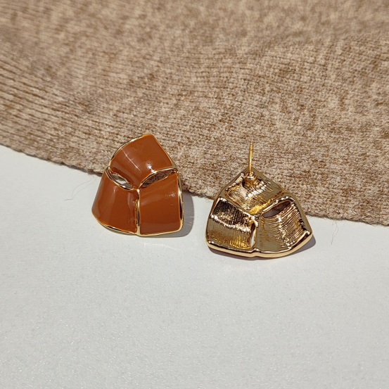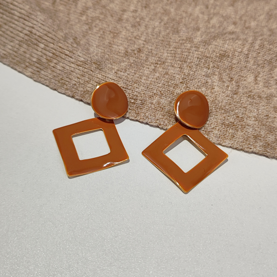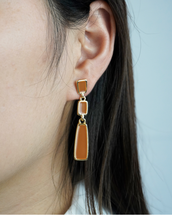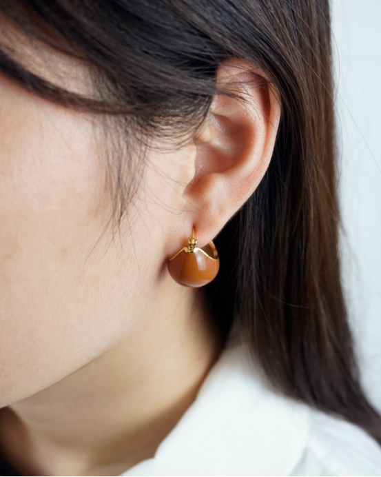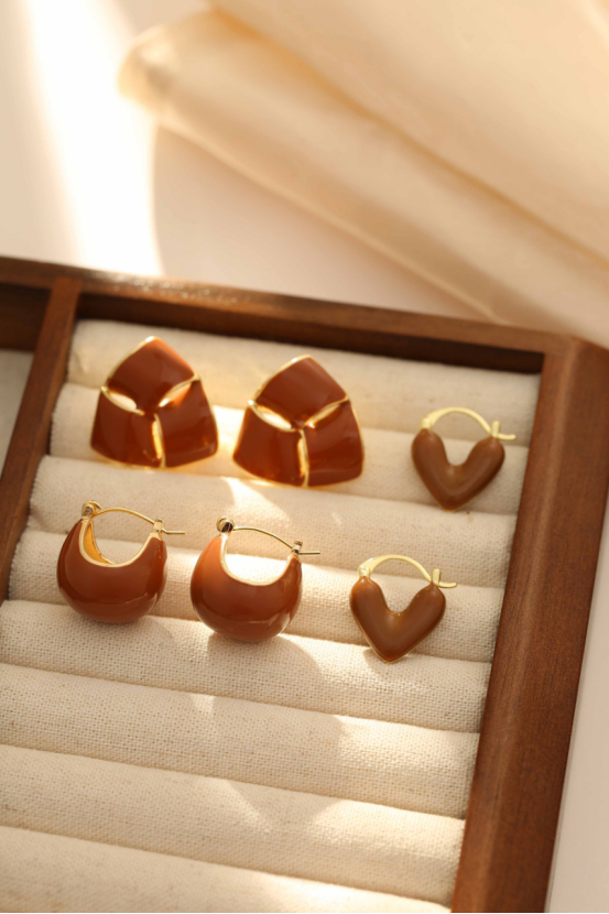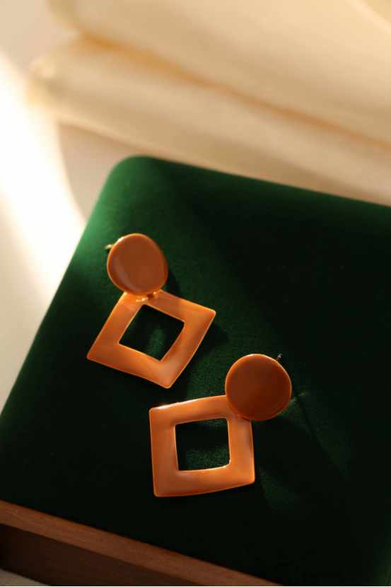 只有简单的棕色滴釉几何面,反而更能体现出这对耳环的质感,在灯光下就能欣赏到它美丽的光泽感