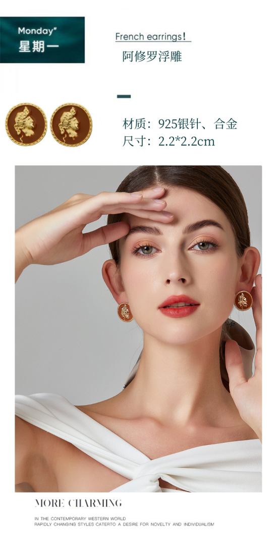 款式:阿修罗浮雕、法式爱心、珐琅几何、复古耳坠 、个性方块 、花篮耳环、法式方糖结