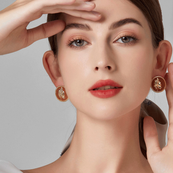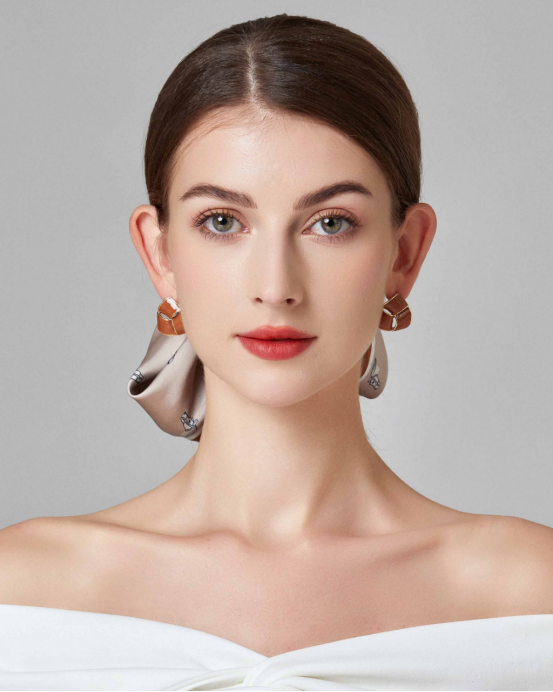 圆形配方形的设计,妙就妙在,不是平平整整的圆和方,而是都带了点弧度的,戴在耳垂上,无论从哪个角度看都更加立体