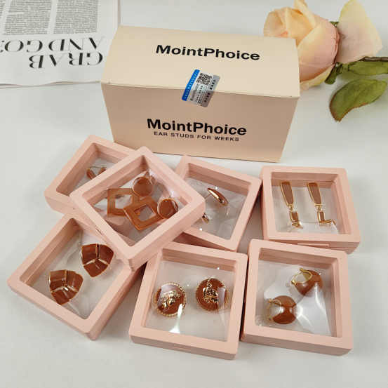 包装也能看出品牌方的用心,每一对耳钉都是独立悬浮盒,粉色的盒子超级少女心~