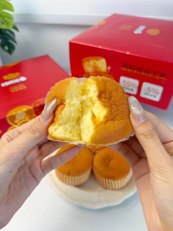 严选≥55%鲜鸡蛋注入灵魂 口感绵密湿润。 主打就是一个“料足”! 蛋糕体蛋香浓郁,松软如云 每一口都是实实在在的满足。
