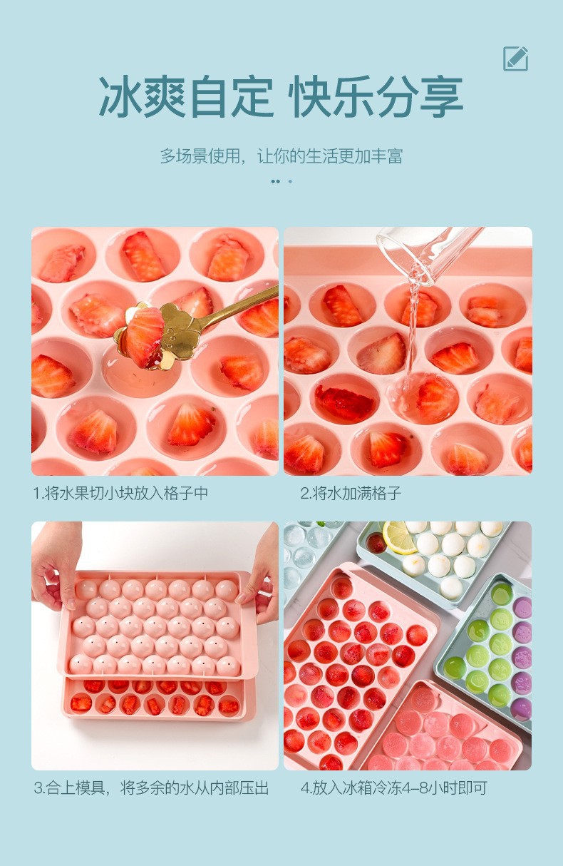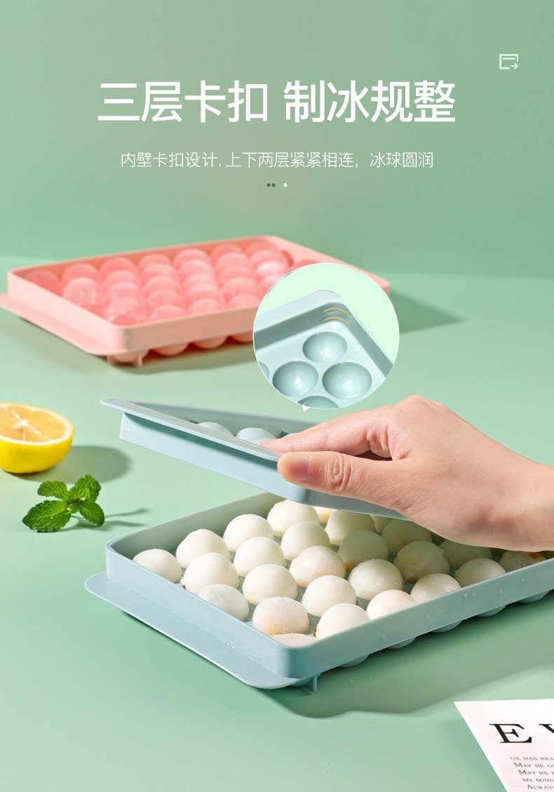 【小弹珠冰格!玩转你的夏日时光】33格圆球冰格塑料冰块模具冰箱冰球模具制冰盒圆形冰模制夏天必备。ry
