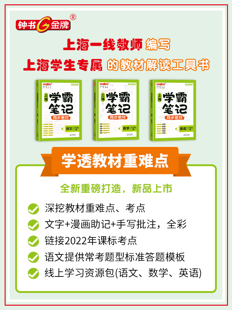 产品说明:2024春季钟书金牌上海学霸笔记下册书名更改为“钟书金牌尖子生笔记”