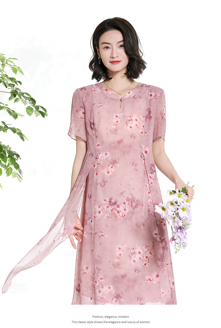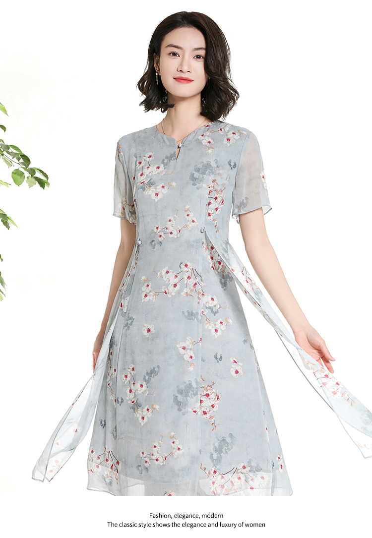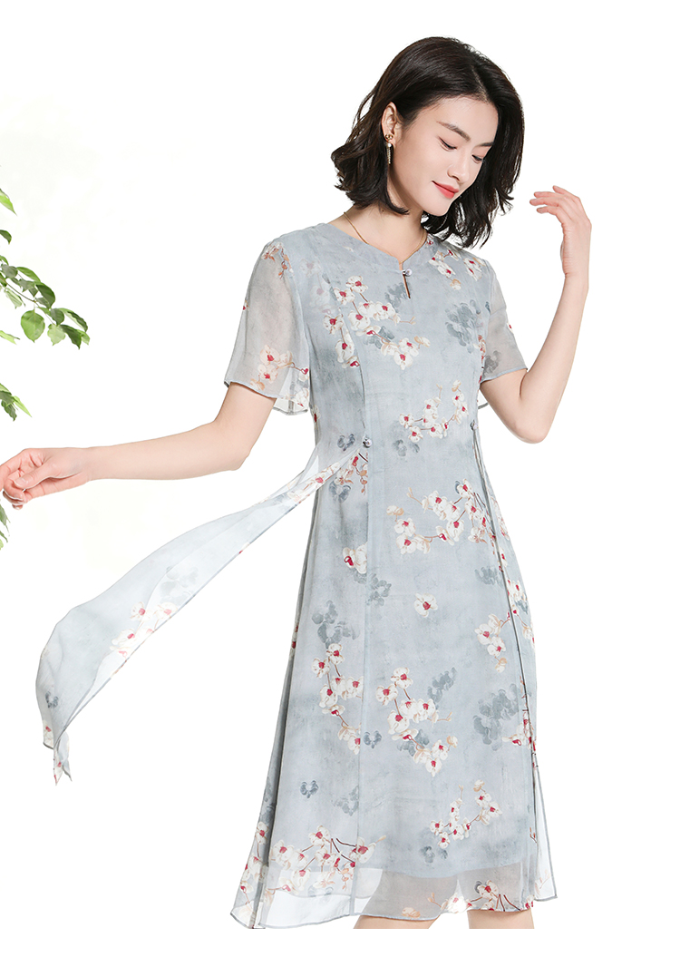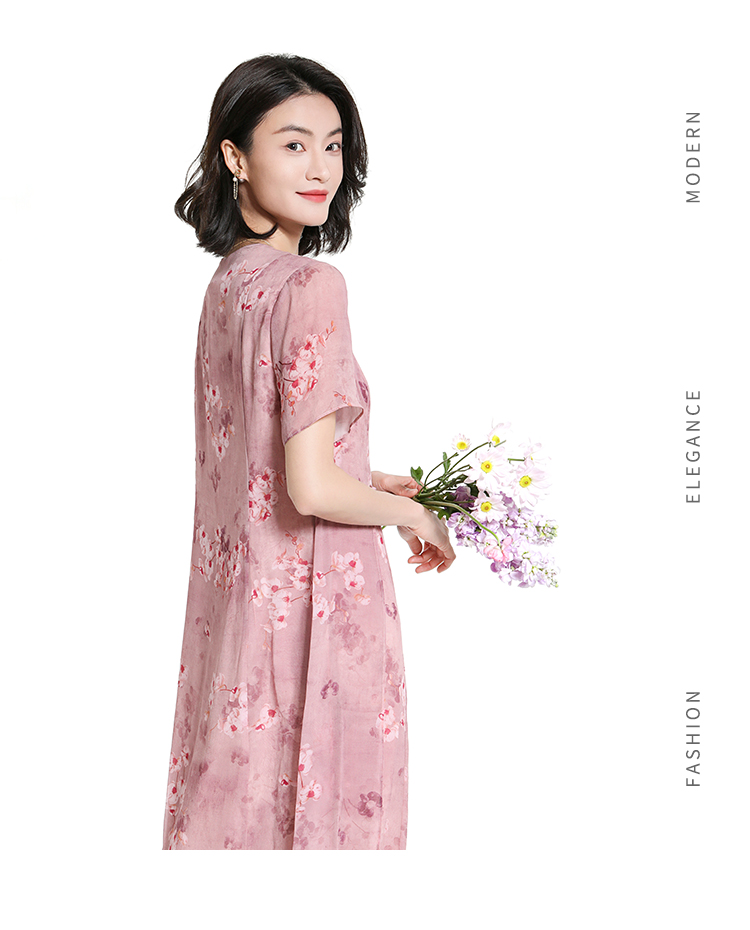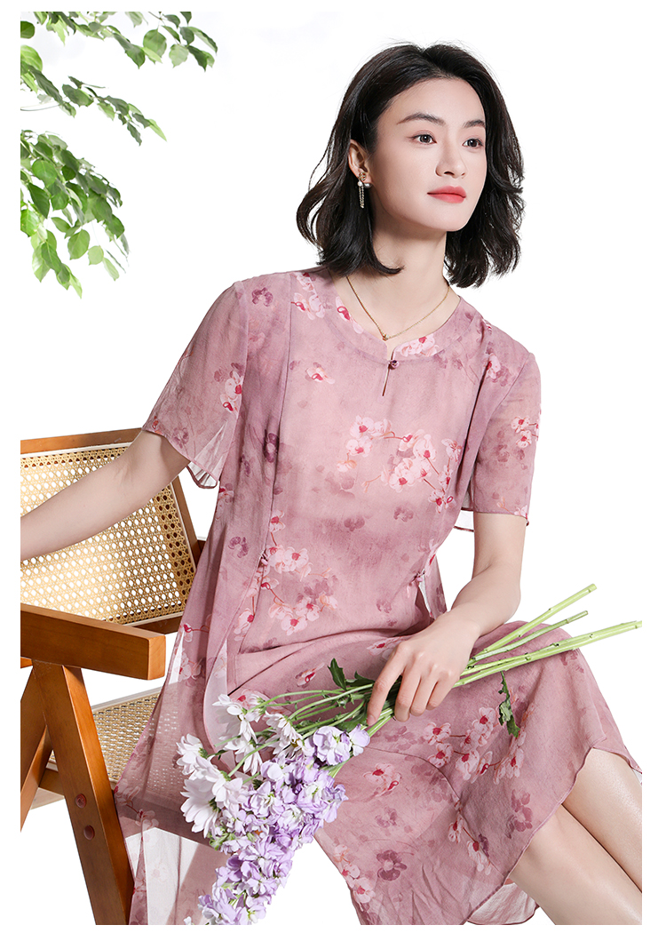 佐尔美夏季新款时尚气质碎花桑蚕丝短袖连衣裙女M42LS72