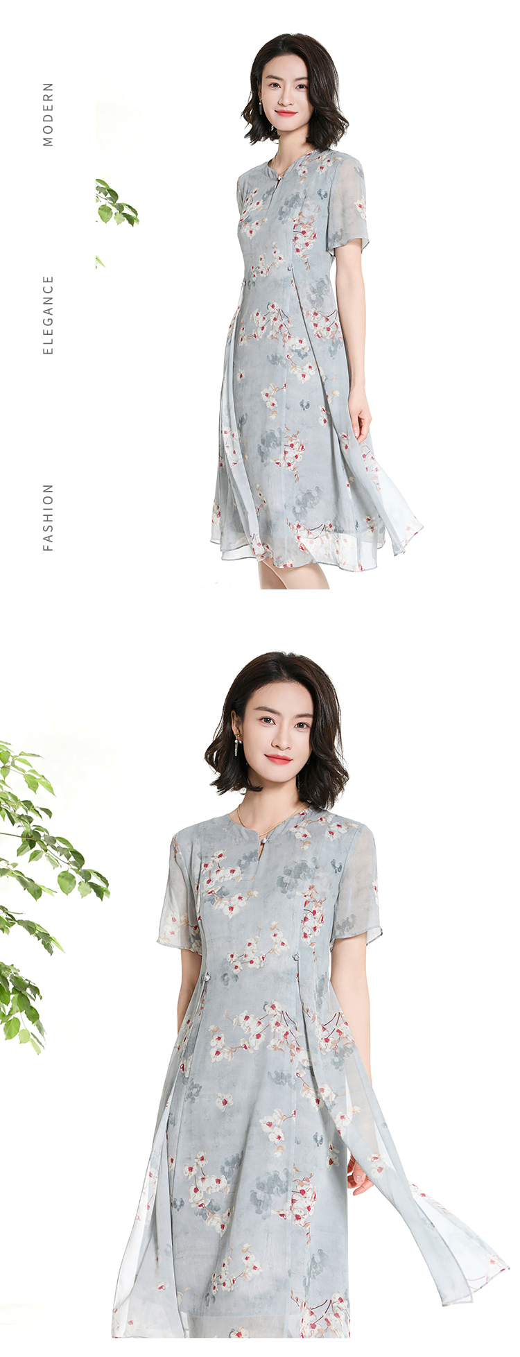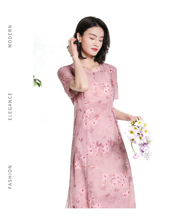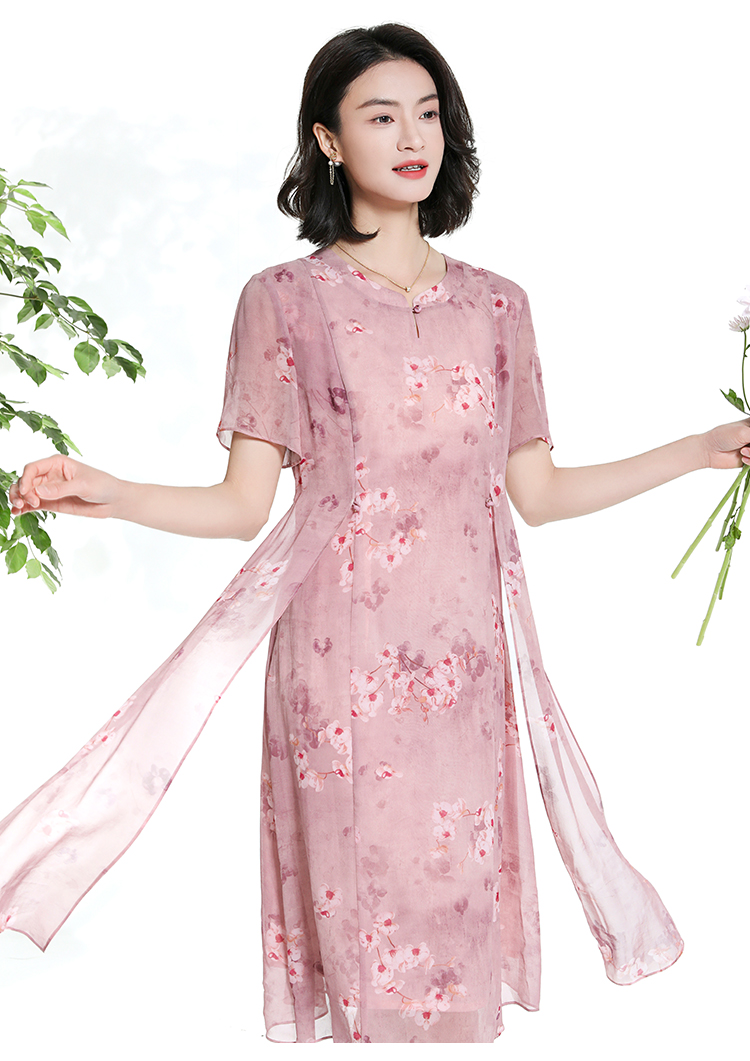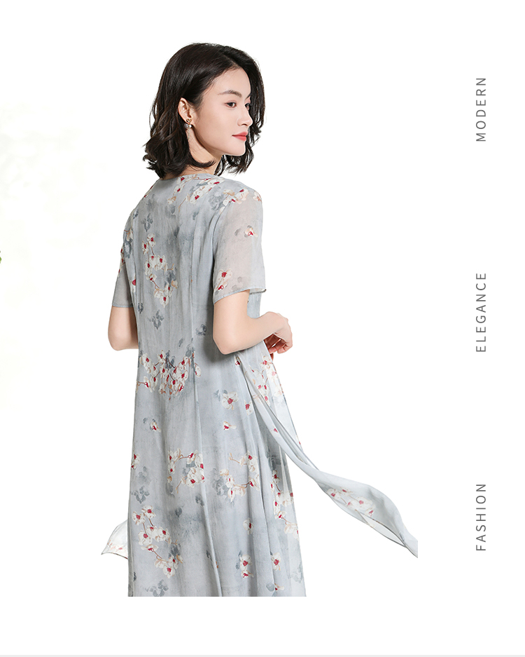 佐尔美夏季新款时尚气质碎花桑蚕丝短袖连衣裙女M42LS72