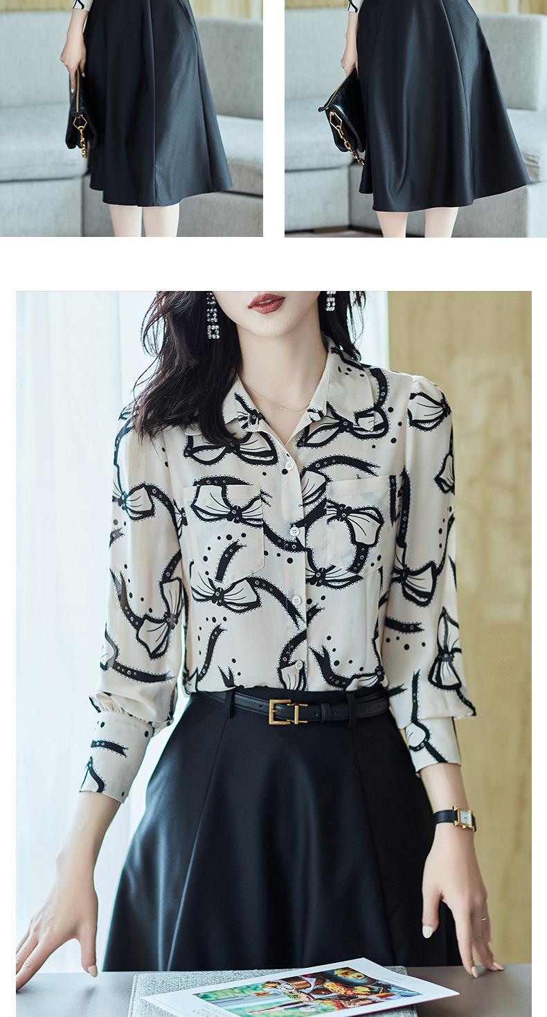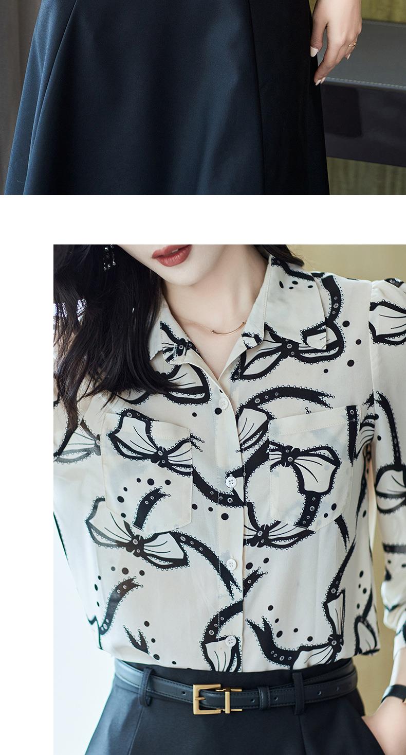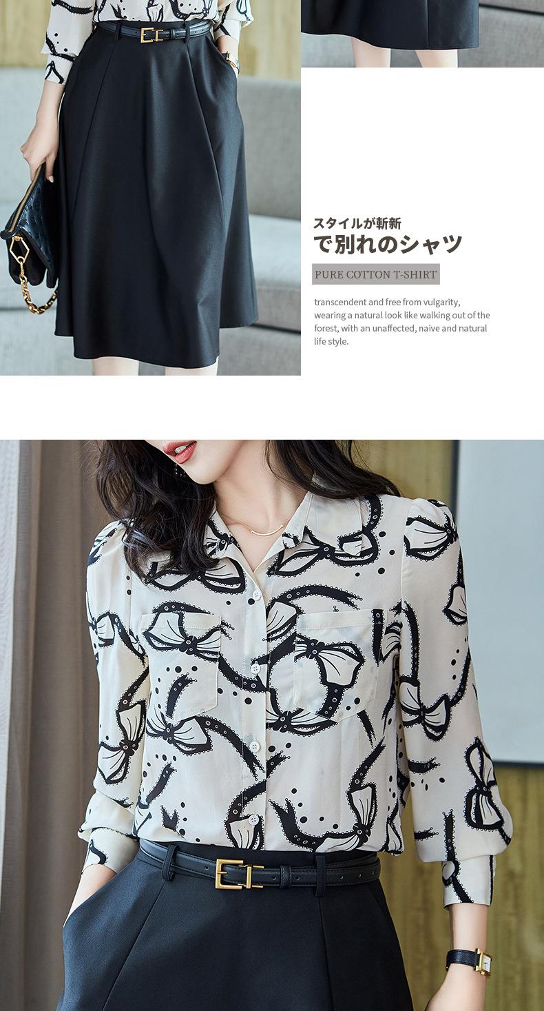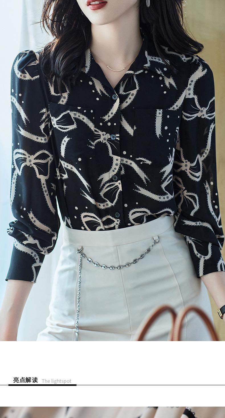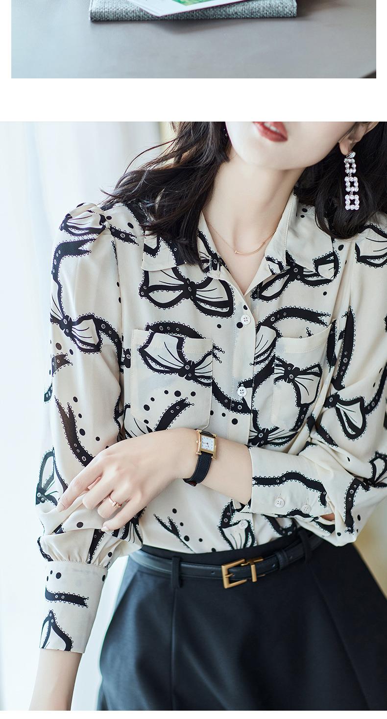 2023秋装新款衬衫女长袖宽松雪纺衫撞色女士衬衣A2388