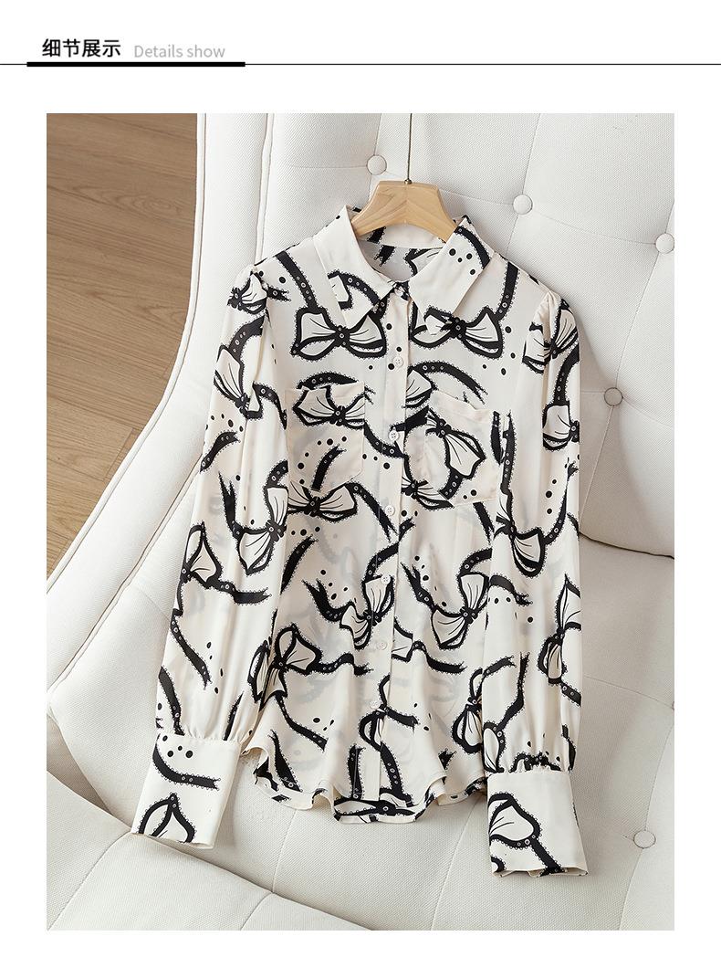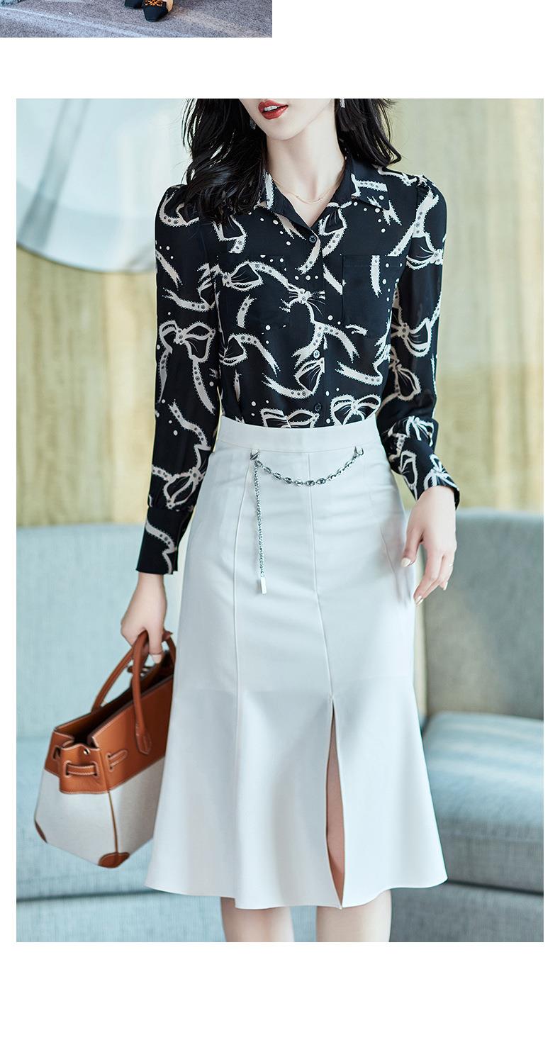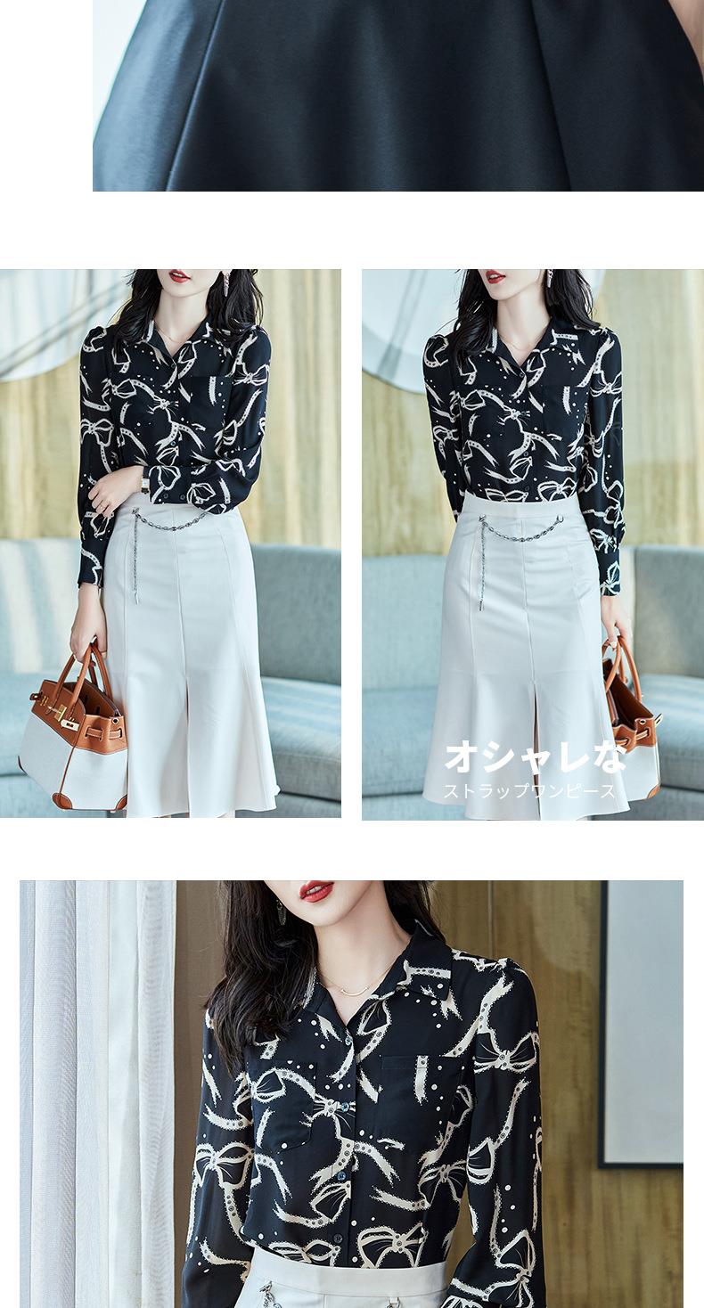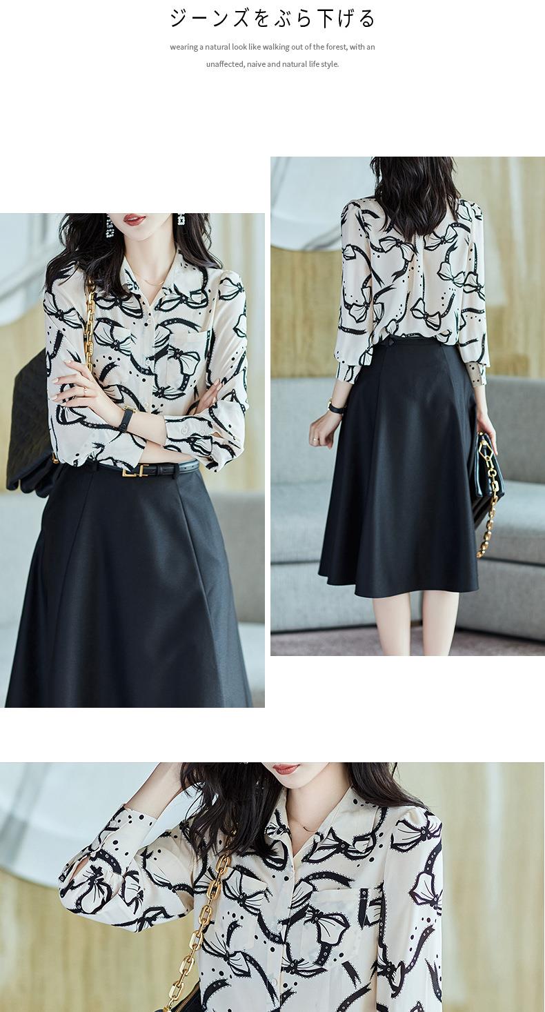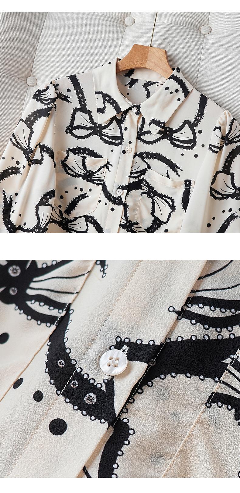2023秋装新款衬衫女长袖宽松雪纺衫撞色女士衬衣A2388