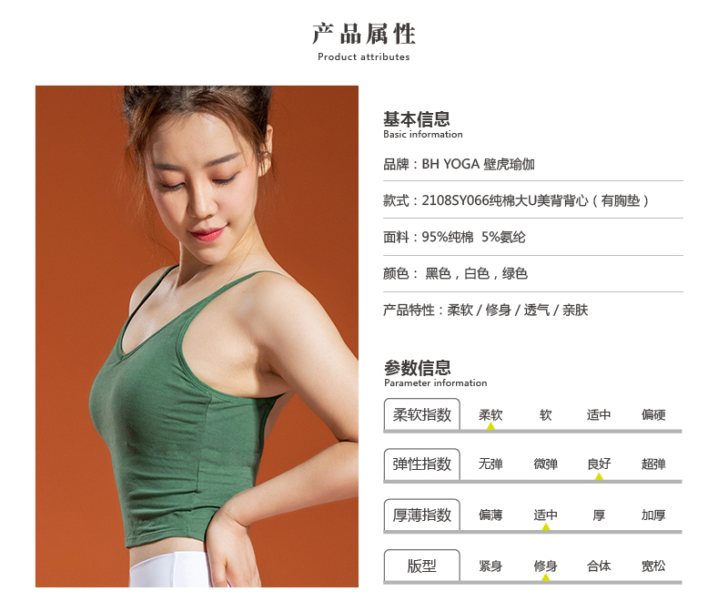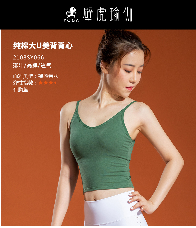 【七十二小时发货】壁虎瑜伽【2108SY066】纯棉大U美背背心(有胸垫)