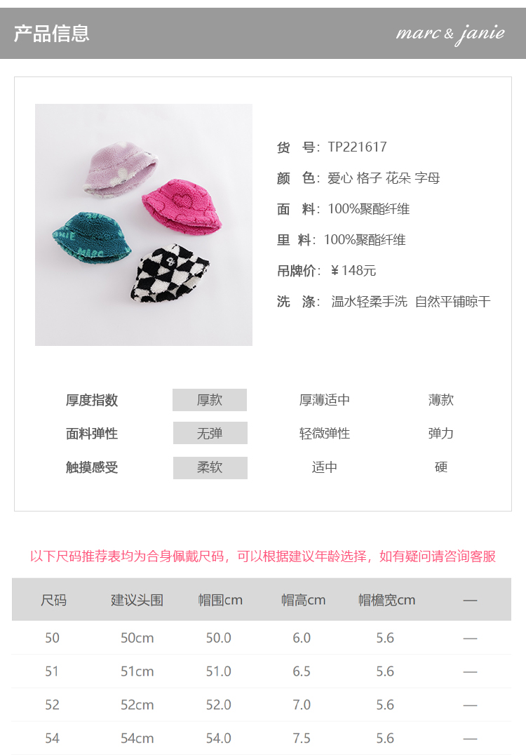 马克珍妮冬装新款 男女童仿羊羔绒百搭渔夫帽 宝宝帽子221617