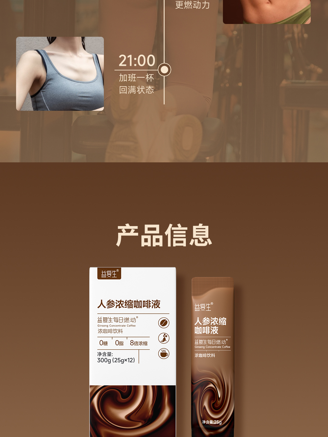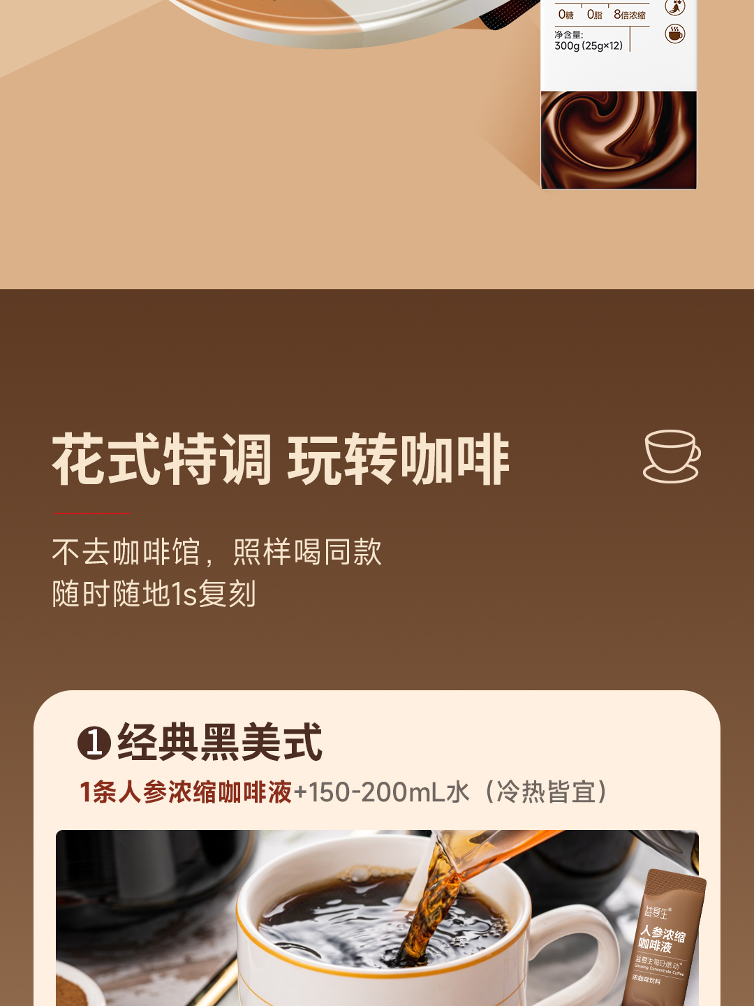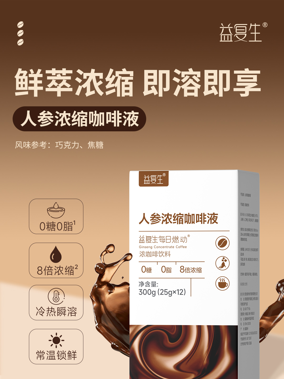 【官方直发】益复生每日燃动人参浓缩咖啡液每盒12条即溶咖啡