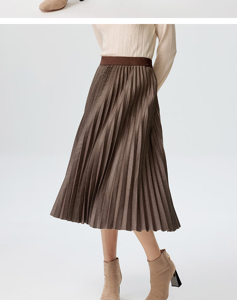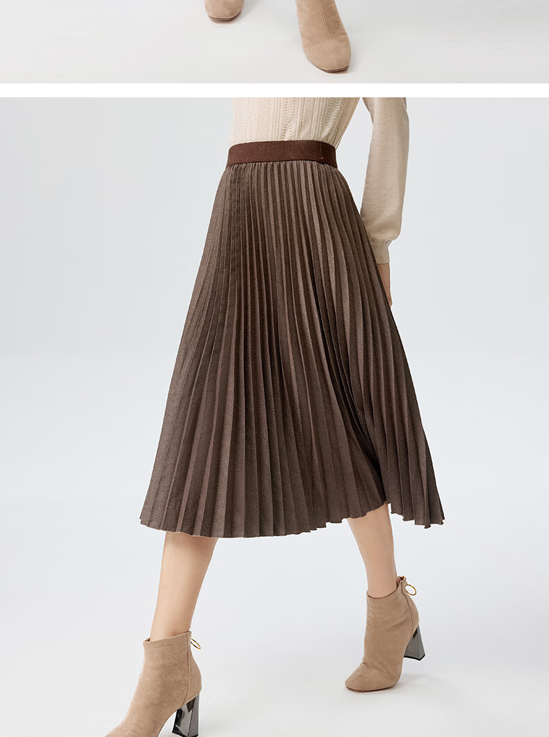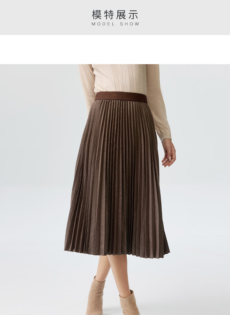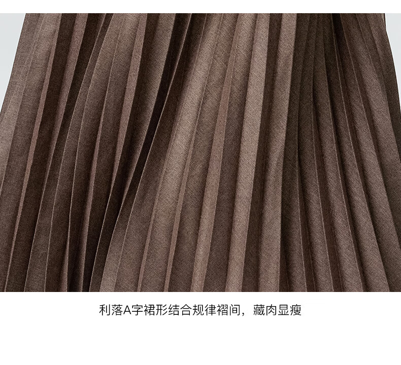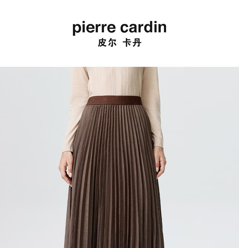 皮尔卡丹女装半身裙咖色中长款A字裙宽松显瘦百褶裙P3436S3988K0