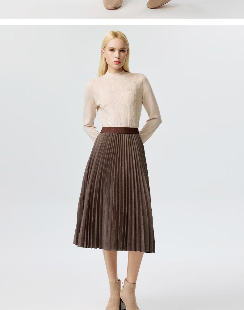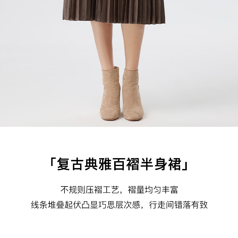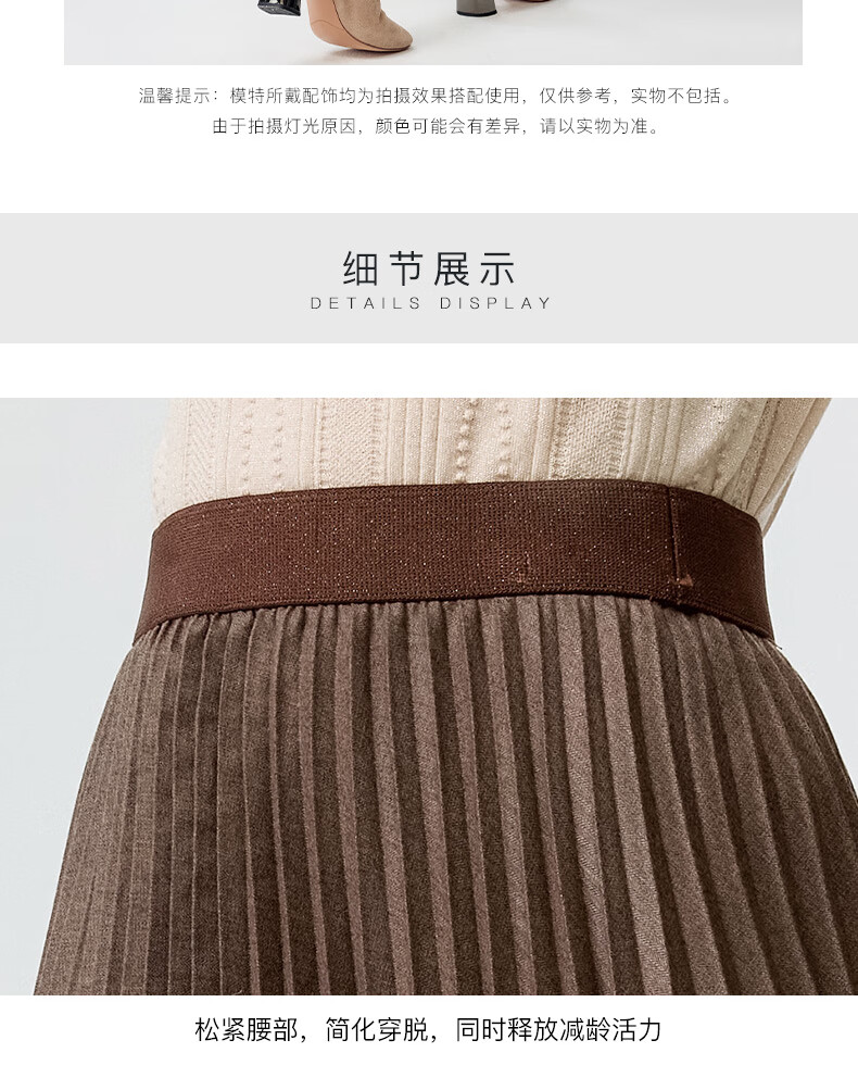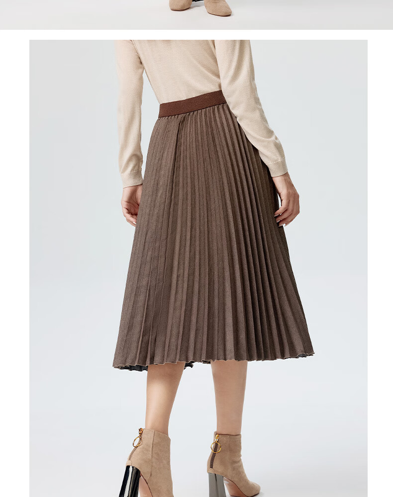 皮尔卡丹女装半身裙咖色中长款A字裙宽松显瘦百褶裙P3436S3988K0