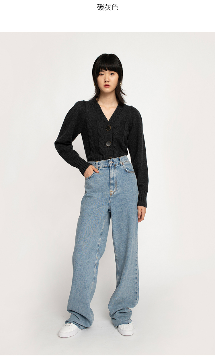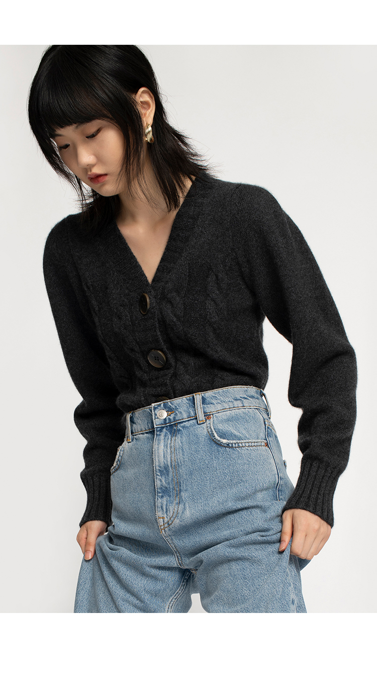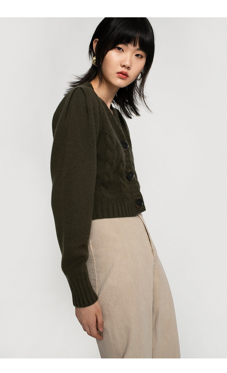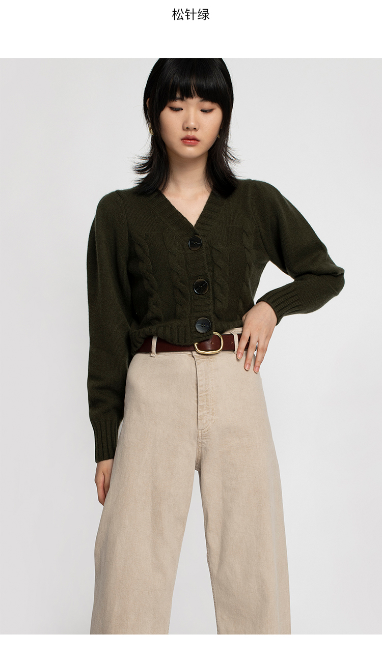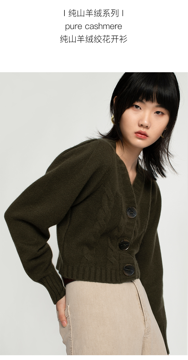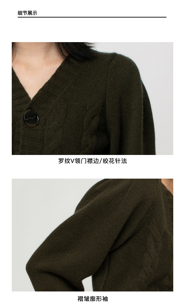 322工房羊绒衫针织开衫女通勤新款秋冬纯色提花长袖复古毛衣外套
