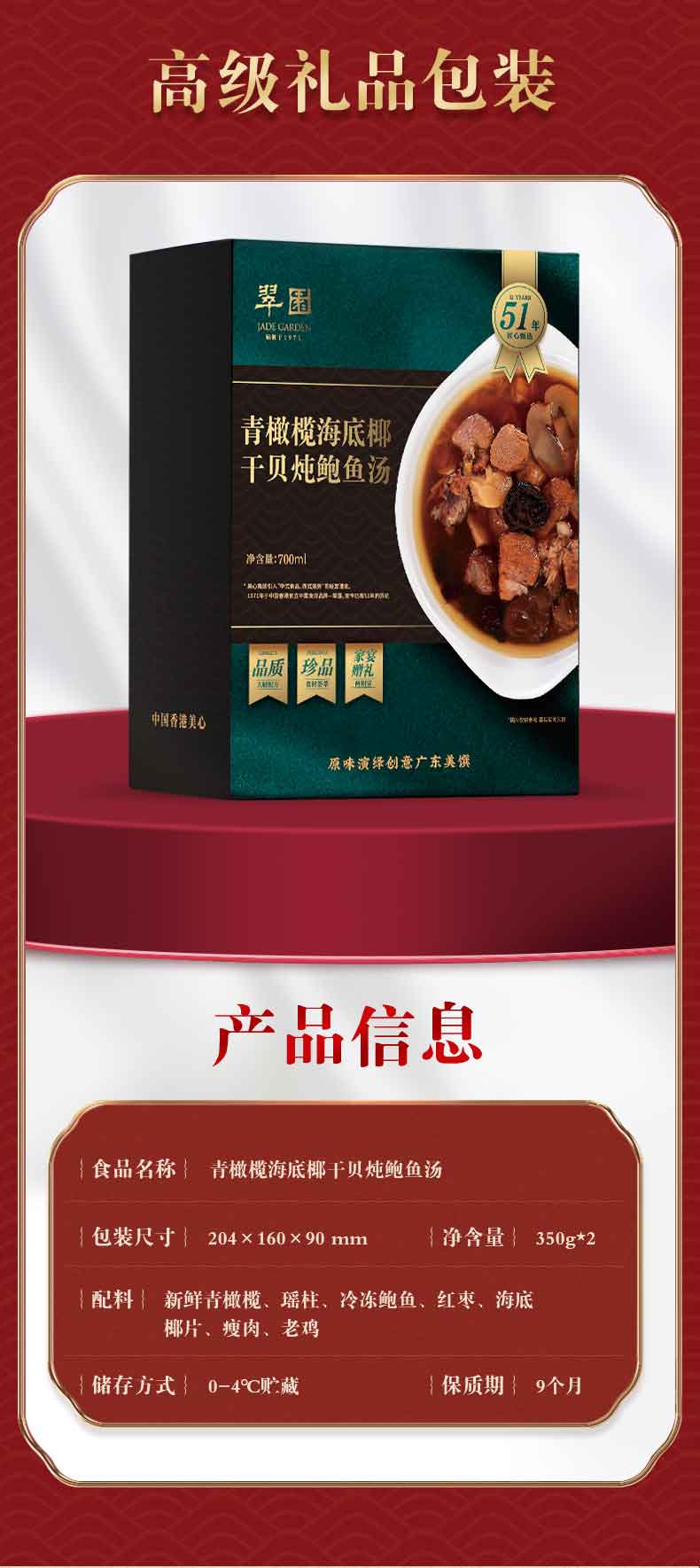 【外运冷链】美心翠园青橄欖干貝鮑魚湯加热即食汤品高端包装礼盒过节赠礼700ml(350ml*2)