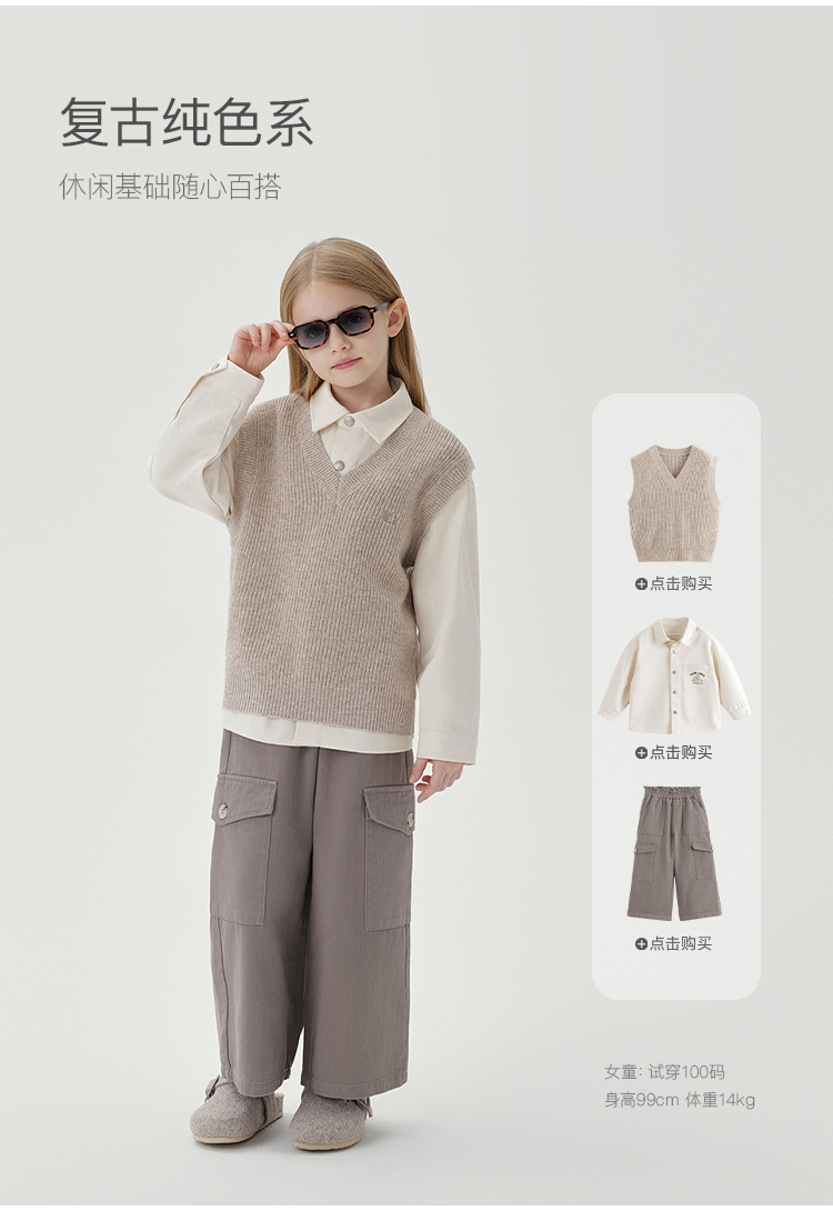 马克珍妮男童山系户外绵羊毛马甲2024年秋季新款241688