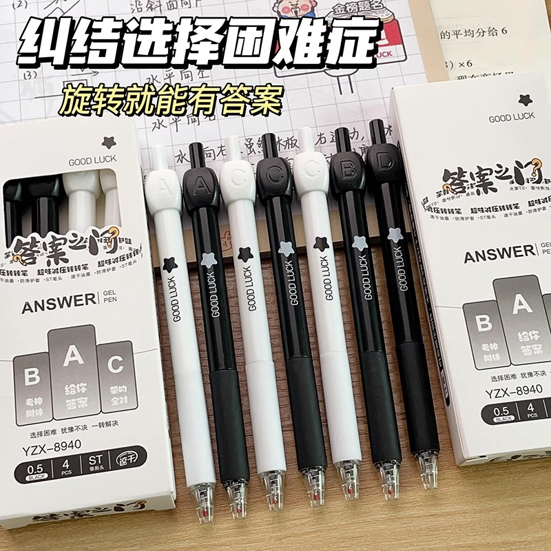 开学福利!【考神附体 送20支笔芯】 新款答案之笔旋转黑笔ST笔芯按动中性笔刷题学生高颜值0.5mm速干黑笔