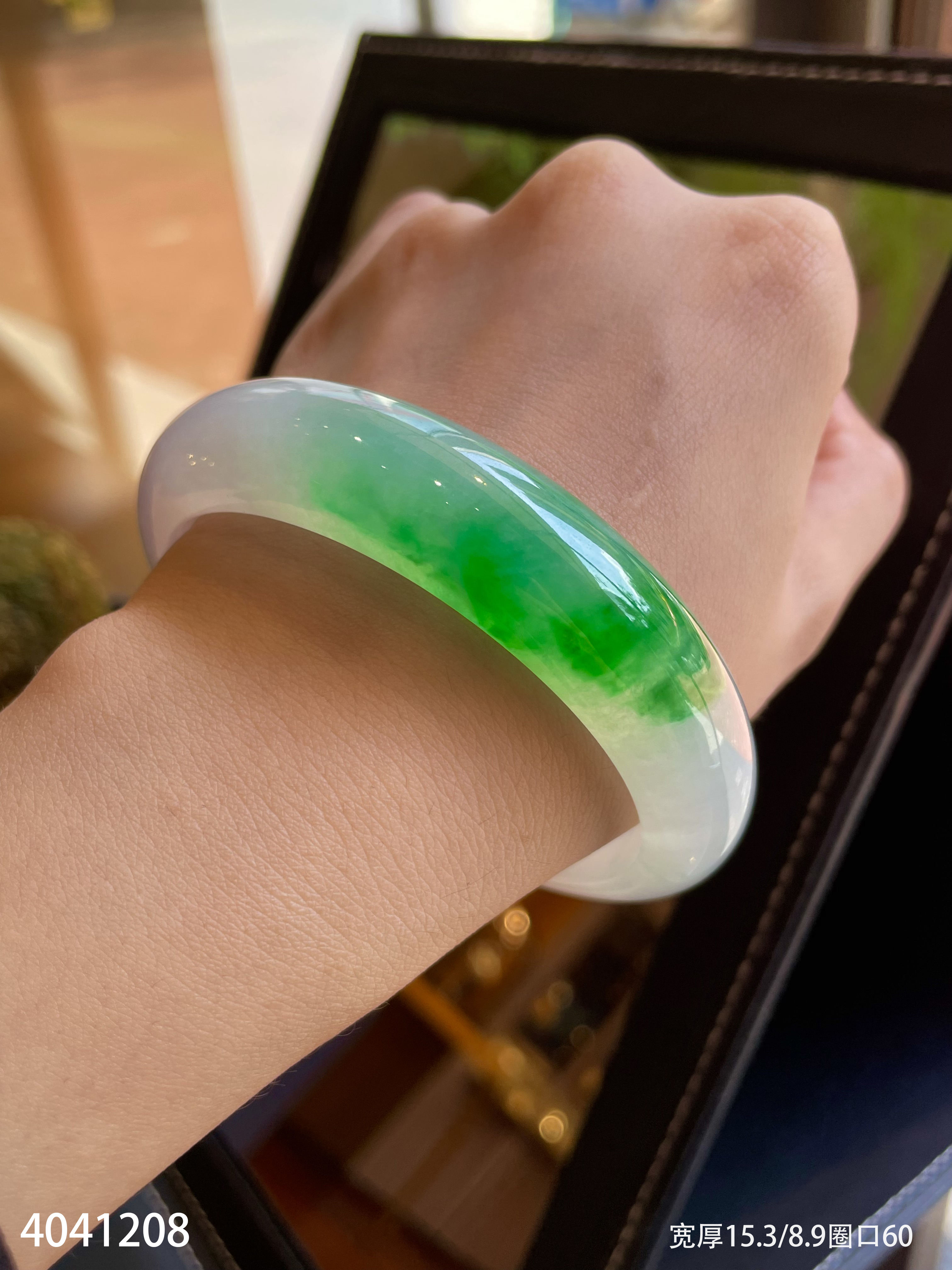 宽版冰飘翠手镯【4041208】圈口60.0~具体价格微信咨询