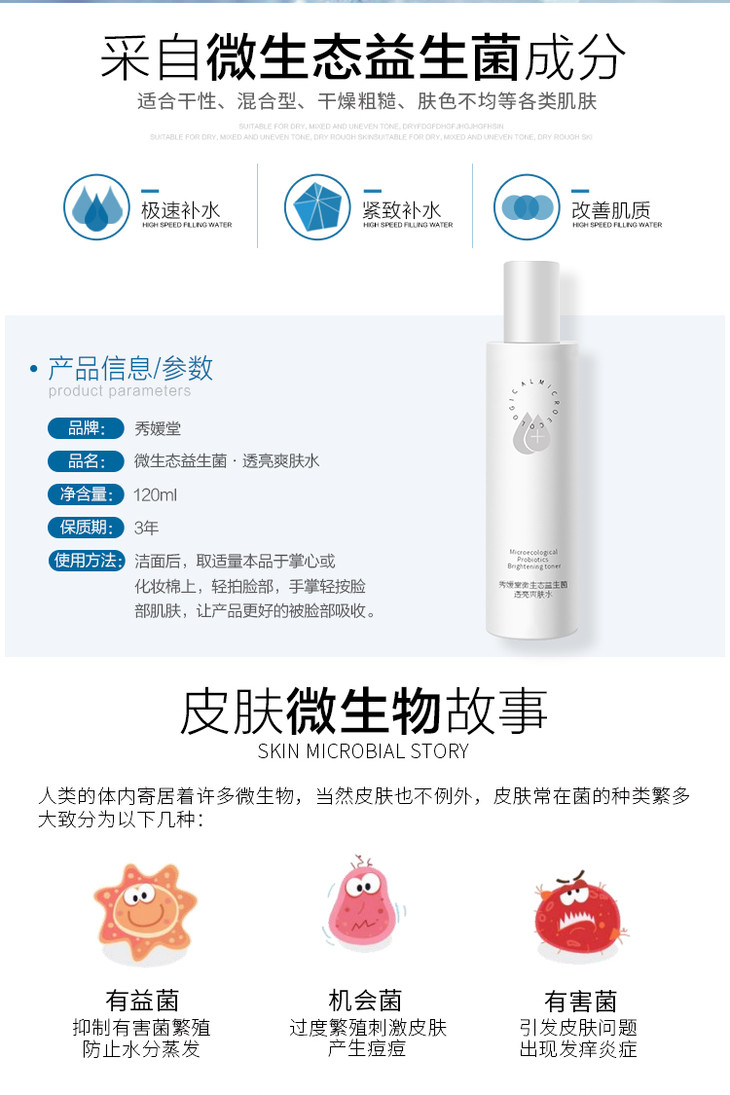 秀媛堂益生菌透亮爽肤水 清爽护肤补水保湿平衡新生肌【秒杀款】